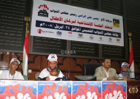 وجدد في ختام كلمته التهنئة لنواب أطفال اليمن بهذه الثقة التي منحوا إياها من قبل زملائهم أطفال اليمن ..داعياً إياهم إلى تحقيق المهام المطروحة أمامهم في تبنى قضايا الأطفال والدفاع عنها وفقاً للآليات الديمقراطية التي كفلها لهم الدستور والقوانين اليمنية النافذة ذات الصلة. مؤكداًس أن مجلس النواب سيكون عوناً لهم في تحقيق تلك المهام. كما تحدث في الجلسة وزير التربية والتعليم الدكتور عبدالسلام الجوفي والأمين العام للمجلس الأعلى للأمومة والطفولة الدكتورة نفيسة الجائفي والأمين العام للجنة العليا للانتخابات شائف الحسيني و رئيس المدرسة الديمقراطية جمال عبدالله الشامي ومدير مكتب المنظمة السويدية لرعاية الأطفال لدى بلادنا الدكتور وليد البشير. وعبرت الكلمات عن التهاني الحارة لأطفال اليمن بهذا العرس الديمقراطي الذي يتبلور في مواصلة ممارسة العملية الديمقراطية بين أوساطهم من خلال الانتخابات الدورية المنتظمة التي يتم إجراؤها في المدارس في إطار الممارسة والنهج الديمقراطي الثابت لليمن .. مؤكدين حرص الجميع على الشراكة في تقديم الرعاية لهذه التجربة لكي تنمو وتتوطد في وعي أجيال اليمن سلوكاً وممارسة حقيقية ترسخ المبادئ والقيم السامية للتداول السلمي للسلطة على مختلف المستويات. ولفتت الكلمات إلى أن تجربة برلمان الأطفال تمر بكل المراحل الانتخابية .. حيث وصل عدد المشاركين فيها إلى (25) ألف طفل وطفلة يتعلمون خلالها الممارسة الديمقراطية ويتعلمون أن الصندوق هو الفيصل وأن عليهم التنافس بكل نزاهة. هذا وفي ختام الجلسة الافتتاحية قام نائب رئيس مجلس النواب ومعه عدد من المسؤولين بتوزيع شهادات النجاح في الانتخابات على أعضاء برلمان الأطفال الجديد. حضر الجلسة الافتتاحية عدد من الإخوة أعضاء مجلس النواب وامين عام مجلس النواب عبدالله أحمد صوفان والأمين العام المساعد أحمد محمد الخاوي ورئيس المؤسسة اليمنية للإذاعة والتلفزيون الدكتور عبدالله الزلب وعدد من المسؤولين وممثلي منظمات المجتمع المدني ، وعدد من ممثلي البعثات الدبلوماسية والمنظمات الدولية المعتمدة لدى اليمن. يذكر أن برلمان الأطفال الحالي يتكون من (46) عضواً يمثلون جميع محافظات الجمهورية ، ويعد هذا البرلمان أحد مشاريع المدرسة الديمقراطية التي لاقت صدىً جيداً وقبولاً في أوساط الطلاب والوسط الحقوقي والحكومي عامة. ويهدف هذا البرلمان إلى توعية الأطفال وتنمية مداركهم بالنهج الديمقراطي وترسيخه في أذهانهم وجعلهم يقومون بأنفسهم بالتوعية بحقوقهم.