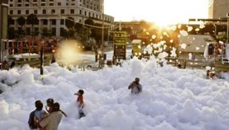 قامت شركة سوني مؤخراً بتصوير إعلان تلفزيوني في مدينة ميامي الأمريكية، حيث قامت من أجل تصوير هذا الإعلان بإغراق المدينة في بحر من الرغوة ، مستخدمة أكبر جهاز في العالم لإنتاج الرغوة وهو قادر على إنتاج مليونين لتر من الرغوة في الدقيقة الواحدة ، شارك في عمل هذا الإعلان طاقم مكون من 150 شخصاً واستخدم 450 مليون لتر من الرغوة !