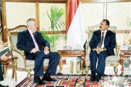 صنعاء / سبأ :استقبل فخامة الرئيس على عبد الله صالح رئيس الجمهورية ، أمس الخميس سيرجي شيميزوف المدير العام لمؤسسة روس ابرون اكسبورت الروسية الذي يزور بلادنا حاليا والوفد المرافق له ، حيث نقل إلى فخامة الرئيس تحيات الرئيس فلاديمير بوتين وتمنياته لفخامته موفور الصحة والسعادة وللشعب اليمني اطراد التقدم والازدهار وللعلاقات بين البلدين الصديقين المزيد من التطور والتقدم .وجرى خلال المقابلة بحث جوانب العلاقات بين بلادنا وروسيا والتعاون المشترك بين البلدين الصديقين وفي مقدمتها التعاون في المجال العسكري سواء ما يتعلق منها بالتدريب والتأهيل أو الجوانب الفنية والتجهيزات العسكرية. وقد نوه فخامة الرئيس بالتطور المطرد التي تشهده العلاقات اليمنية الروسية وعلى مختلف الاصعده .. مشيرا إلى أنها علاقات صداقه تاريخية متطورة .. مؤكدا الحرص على تعزيزها وتطوريها بما يلبي المصالح المشتركة للشعبين الصديقين اليمني والروسي . كما حمل فخامة الرئيس سيرجي شيميزوف نقل تحيات للرئيس فلاديمير بوتين وتمنياته له بموفور الصحة والسعادة وللشعب الروسي الصديق المزيد من التقدم والرفاهية .وخلال المقابلة منح فخامة الرئيس السيد سيرجي وسام الواجب تقدير ا لدورة في خدمة العلاقات اليمنية الروسية وتعزيز التعاون بين البلدين الصديقين .حضر اللقاء أمين عام رئاسة الجمهورية عبدالله البشيري ورئيس هيئة الأركان اللواء احمد الأشول وعدد من المسؤولين بوزارة الدفاع و مدير دائرة التعاون الدولي بوزارة الدفاع لروسيا الاتحادية اللواء فيدروف فلاديمير وعدد من المسؤولين في مؤسسة روس ابرون إكسبورت الروسية والقائم بإعمال السفارة الروسية بصنعاء .