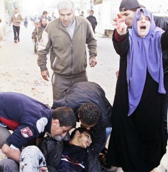 غزة /14اكتوبر/ نضال المغربي - ادم انتوس:قالت مصادر طبية ان قذائف دبابات إسرائيلية قتلت أكثر من 40 فلسطينيا عند مدرسة تابعة للأمم المتحدة يحتمي بها مدنيون في قطاع غزة يوم أمس الثلاثاء فيما قد يعزز الضغوط الدولية على إسرائيل لوقف هجومها على القطاع.وقالت متحدثة باسم الجيش الإسرائيلي أنها تتحرى بشأن معلومات عن الحادث الذي وقع عند مدرسة الفاخورة بمخيم جباليا للاجئين في رابع أيام الهجوم البري الذي شنته بعد أسبوع من الضربات الجوية التي فشلت في منع حركة المقاومة الإسلامية (حماس) من إطلاق الصواريخ على إسرائيل.وصور صحفيون من رويترز جثثا متناثرة على الأرض وسط برك من الدماء والأحذية والملابس الممزقة.وقال شهود أن قذيفتي دبابة انفجرتا خارج المدرسة ما أسفر عن مقتل 42 مدنيا على الأقل وإصابة العشرات من الذين لجؤوا إلى المدرسة أو سكان المنطقة.لكن جون جينج مدير عمليات وكالة غوث وتشغيل اللاجئين الفلسطينيين (أونروا) في غزة قال للصحفيين في مقر الأمم المتحدة من خلال دائرة تلفزيونية مغلقة من غزة أن ثلاث قذائف مدفعية سقطت قرب المدرسة التي كان 350 شخصا يحتمون بها.وتابع أنه لا يزال يجري تقدير عدد الضحايا لكن أحدث الإحصاءات تفيد بمقتل 30 شخصا وإصابة 55 خمسة منهم على الأقل في حالة حرجة.وقال جينج ان أونروا تزود الجيش الإسرائيلي بانتظام بالإحداثيات الجغرافية الدقيقة لمواقع منشاتها وان المدرسة تقع في منطقة آهلة بالسكان.وقالت وزيرة الخارجية الإسرائيلية تسيبي ليفني ردا على أسئلة للصحفيين «لست على علم» بالحادث.وأضافت «للأسف يختبئ (مقاتلو حماس) بين المدنيين.» وقالت أن إسرائيل تحاول تجنب إيقاع خسائر بين المدنيين.وقال مسعفون وشهود عيان انه في وقت سابق يوم الثلاثاء أودت ضربة جوية اسرائيلية منفصلة لمدرسة أخرى تابعة لاونروا بحياة ثلاثة فلسطينيين.وذكر مسؤولون طبيون أن الحادث الذي وقع قرب مدرسة جباليا يرفع عدد القتلى في صفوف المدنيين في قطاع غزة الذي يسكنه 1.5 مليون فلسطيني يوم الثلاثاء فقط إلى 77.
