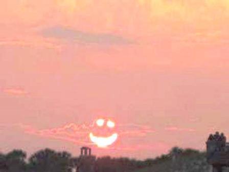 أضحك للدنيا تضحك لك .. مقولة اعتدنا على سماعها تدعو إلى التفاؤل وترك الأحزان والهموم وراء الظهور وهذا ما حدث مع أحد مصوري الفوتوغرافيا الذي يبدو أنه التزم بالمقولة ونفذها حيث ابتسمت له الشمس في السماء بالفعل في مشهد آثار الدهشة والغرابة لكل من رآه.لقد كان يوم جمعة ذاك اليوم الذي انفرجت فيه أسارير الشمس للمصور بعد أن تحالفت أشعتها مع السحب في السماء ليتكون هذا الشكل البديع الذي ينم عن فرحة غامرة أصابت أكبر نجم في المجرة لتبدأ في توزيع الابتسامات بدلاً من الأشعة.