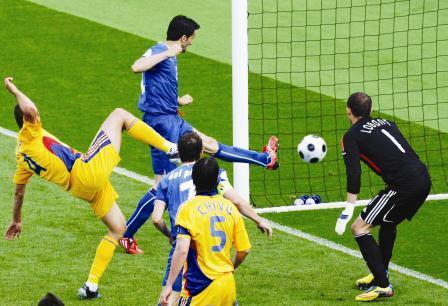 وكانت رومانيا تقدمت على ايطاليا التي خسرت مباراتها الأولى أمام هولندا 3 -صفر في الدقيقة 55 بهدف حمل توقيع مهاجمها ادريان موتو الذي استغل كرة ضعيفة أعادها مدافع ايطاليا جيانلوكا زامبروتا الى حارس مرماه ليحرز منها هدف بلاده.