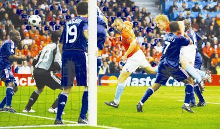 برن / 14 اكتوبر / متابعات / وكالات : حجز المنتخب الهولندي مقعده في الدور ربع النهائي للمرة السادسة في 6 مشاركات واعلن نفسه المرشح الاقوى للفوز باللقب بعدما تغلب على نظيره الفرنسي وصيف بطل المونديال 4-1 يوم امس الجمعة على «ستاد دو سويس» في برن في الجولة الثانية من منافسات المجموعة الثالثة من الدور الاول لكأس اوروبا لكرة القدم المقامة في النمسا وسويسرا حتى 29 الشهر الحالي. من ناحية أخرى نجت ايطاليا بطلة العالم من الخروج من كأس أوروبا لكرة القدم عندما تعادلت مع رومانيا بهدف لكل فريق في منافسات المجموعة الثالثة بالبطولة أمس الجمعة.