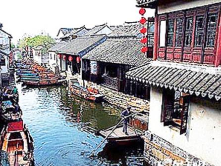 كما يقال إذا كنت من عشاق الجبال فاذهب إلى جبل خواشان السفير الحقيقي لجمال الجبال العظيمة في الصين,و وإذا كنت من عشاق البلدات المائية فاذهب إلى زوزوانغ نموذج القرى المائية في الصين.و لا عجب من هذا المثل فهذه البلدة تمتلك من المقومات ما يجعلها منطقة جذب سياحي مشهورة و يكمن جمالها في فنها المعماري وطبيعتها الخلابة الساحرة. تقع البلدة في كونشان على بعد 38 كم جنوب شرق سوجو في مقاطعة جيانغسو.يمتد تأريخها إلى ما قبل 900 سنة و تحمل لقب أول موطن مائي في الصين.و من ابرز سمات هذه البلدة تلك الجسور الصغيرة و المياه الجارية بين البيوت لذا فإنها تجذب أعداداً كبيرة من السياح.و يعتبر الجسر الملقب بالمفتاح أشهر جسور هذه المدينة حيث تم بناؤه في الفترة 1573 إلى الفترة 1619 و يبدو شكله مثل المفتاح الذي كان يستخدمه الصينيون في العصور القديمة. و تعتبر أعياد الشاي أيضا من سمات هذه البلدة حيث يقيمون مهرجانات الشاي المختلفة. وجسر فوآن الذي يعد منشأة معمارية مميزة تجمع جسرا وبناية معا، هيكل الجسر مشيد من جرانيت جينشان، وحواجزه ودرجاته مبنية بصخور ووكانغ، وسطحه منقوش بأشكال نافرة، بينما بنيت على جوانب هيكل الجسر الأربعة عمارات ذات أفاريز طائرة تبدو عظيمة. بفضل الجمع بين الجسر والبناية، أصبح هذا الجسر أعظم جسر مع بناية في جنوب الصين، وهو أيضا رمز لبلدة زوزوانغ القديمة. الأزياء والزينات للمرأة الريفية بزوزوانغ ممتعة جدا حيث تغطي المرأة رأسها بمنديل عليه رسوم زرقاء أو قطعة من القماش الأزرق، وتلبس ملبسا مفتوحا مائلا في الأمام، وتشد وسطها بوزرة صغيرة ذات ثنايا كثيرة يتدلى منها شريطان ملونان من خلف وسطها إلى خلف ركبتيها، وتزين رأسها بشراشيب حمراء وخضراء، وتلبس سروالا أزرق قاتماً، وحذاء قماشيا مطرزا بفتحة مستديرة.