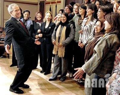 واشنطن / سبأ:التقى الرئيس الأمريكي جورج بوش أمس في البيت الأبيض بوفود منظمات المجتمع المدني والبرلمانات والمجالس المحلية في عدد من الدول العربية ومنها اليمن التي تشارك في دورة إدارة ومراقبة الانتخابات التي نظمتها مبادرة «شراكة الشرق الأوسط» بالتعاون مع الجامعة الأمريكية في واشنطن . وتشارك في الدورة 44 ناشطة من 9 دول عربية منهن 6 ناشطات من اليمن يمثلن المجالس المحلية واللجنة الوطنية للمرأة وإتحاد نساء اليمن .وأثنى الرئيس الأمريكي على مشاركة المرأة العربية و جهودها في تطوير وتنمية المجتمعات العربية. و أكد « إن المرأة العربية شريك أساسي في العملية الديموقراطية» .. معربا عن أمله في أن تستمر الجهود والنشاطات الفعالة للمرأة العربية على المستوى المحلي والدولي.
