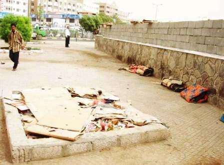 تصوير وتعليق/ علي الدرب:منظر الكراتين والفرشان وكذا الاحجار والبردين لحجز مواقع للنوم في الممرات والشوارع أصبح مألوفاً في احياء من محافظة عدن وهذه الصور للمساحة الموجودة في الشارع العام في المنصورة بجانب مركز مكافحة السل ومطعم شبوة التي تحولت إلى لوكندة مفتوحة في المساء وبهذه الكراتين والمخلفات تحجز المواقع في النهار دون أن يمسها أحد من عمال النظافة أو الجهات المختصة رغم ماتسببه من ازعاج ومضايقة للمارة إضافة إلى تشويه المنظر العام .