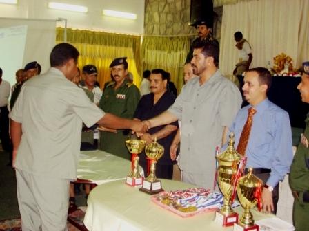 عدن / وداد شبيلي:كرمت إدارة أمن محافظة عدن صباح أمس في قاعة نادي الضباط (93) ناشطاً ومبرزاً من مختلف وحدات الأمن بالمحافظة وكذا المتقاعدون والمتوفون، وذلك في الحفل الذي نظمته إدارة الأمن احتفاءً بالعيد الـ(18) للجمهورية اليمنية (22 مايو).وفي الحفل ألقى الدكتور عدنان الجفري محافظ عدن كلمة أشاد فيها بالجهود والدور الذي يقوم به رجال الأمن في كافة الوحدات العسكرية للحفاظ على الأمن والاستقرار والسكينة العامة بالمحافظة وحماية الممتلكات العامة والخاصة.وأوضح أن ما يقوم به رجال الأمن يدل على مدى حرصهم في تأدية رسالتهم النبيلة والإنسانية لخدمة المواطنين والمجتمع، مؤكداً أن قيادة محافظة عدن ستقدم الدعم الكامل لتطوير عمل إدارة الأمن بالمحافظة وكذا تقديم أوجه الرعاية لرجال الأمن تقديراً لجهودهم وإسهاماتهم في الحفاظ على الأمن والاستقرار.كما ألقى العميد ركن عبدالله عبده قيران مدير أمن عدن كلمة هنأ فيها المكرمين وعبر عن تقديره لجهودهم والدور الذي يقومون به في تطوير العمل الأمني والحفاظ على الاستقرار وأمن الوطن، مؤكداً اهتمام قيادات أمن المحافظة بالنشطاء والمبرزين من رجال الأمن في مختلف المجالات.وفي الحفل جرى استعراض تقرير الحالة الأمنية للفصل الأول لعام 2008م بالإضافة إلى استعراض تقرير الإنجاز السنوي لعام 2007م، كما تم تقديم العديد من الفقرات الموسيقية والغنائية من قبل الفرقة الفنية التابعة لإدارة الأمن بعدن وقصيدة شعرية عبرت عن المناسبة.