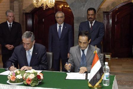 صنعاء / سبأ :وقع أمس بصنعاء على مذكرة تفاهم الخاصة بإنشاء لجنة وزارية للتعاون الاقتصادي والفني بين الجمهورية اليمنية والسلطة الوطنية الفلسطينية، بحضور رئيس الوزراء الدكتور علي محمد مجور، ورئيس حكومة تسيير الأعمال الفلسطينية الدكتور سلام فياض .وقع الاتفاقية عن الجانب اليمني وزير الصناعة والتجارة الدكتور يحيى المتوكل ، وعن الجانب الفلسطيني وزير الاقتصاد الوطني والأشغال والاتصالات كمال حسونة.وأوضح المتوكل لوكالة الأنباء اليمنية / سبأ / أن توقيع هذه المذكرة يعد خطوة أولى لوضع أجندة وبرامج عمل للجنة الوزارية المشتركة للمرحلة القادمة في مختلف المجالات الاقتصادية والتجارية والفنية .ولفت إلى أن مذكرة التفاهم تضمنت عدة مجالات للتعاون بين البلدين الشقيقين إلى جانب التعاون الاقتصادي والتجاري وذلك في مجالات الاتصالات والتعليم ، بالإضافة إلى التأكيد على بدء تنفيذ مذكرة التعاون التجاري المرتبط بإقامة مجلس الإعمال المشترك بين الجانبين ،وكذا دعم التبادل التجاري بين الدولتين .وأكد وزير الصناعة والتجارة أهمية تشجيع المنتجات الفلسطينية من خلال إقامة معرض تجاري فلسطيني دائم للمنتجات الفلسطينية بصنعاء ،وبعض الاستثمارات الأخرى التي ستتحدد من خلال الاجتماعات التي ستعقد بين رجال أعمال البلدين ،وتحديد بعض أوجه التعاون والتسهيلات التي يمكن أن تقدمها الجمهورية اليمنية في هذا الإطار .من جانبه قال وزير الاقتصاد الوطني والأشغال والاتصالات الفلسطيني كمال حسونة أن مذكرة التفاهم اشتملت على الخطوط الأولى للعمل المشترك في المجال الاقتصادي والتجاري بين البلدين الشقيقين اليمني والفلسطيني .وأكد حسونة أن هذه المذكرة ستسهم مساهمة فعالة في مصلحة البلدين فيما يخص التبادل التجاري سيما وأنه سيكون هناك معرض دائم للمنتجات الفلسطينية بصنعاء ، وكذا تشكيل لجنة مشتركة لمتابعة وحل كافة المعوقات الخاصة بعملية التبادل التجاري وأهمها عملية النقل والاستيراد والتصدير والتعاملات المالية عبر البنوك وكل ما من شأنه تسهيل عملية التبادل التجاري بين البلدين الشقيقين .