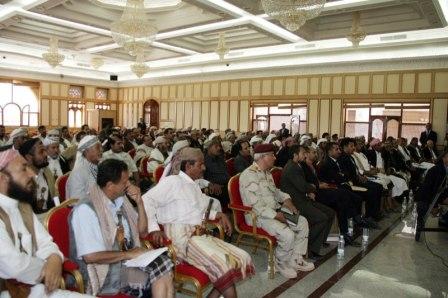 وخاطب فخامته الحضور قائلا:« انا أحملكم كامل المسؤولية ولا احمل الجيش او الامن او الشرطة وانما احمل المشايخ والشخصيات الاجتماعية مسؤولية حماية مناطقهم ومنع أي قادمين اليها بغرض التخريب او إقلاق الامن» ، مؤكدا ان الوطن هو مسؤوليتنا جميعا ، وانه بتكاتف الجميع سيتم تحقيق كل ما نتطلع اليه على دروب البناء والتقدم. [c1]* التفاصيل راجع صفحة متابعات إخبارية .[/c]
