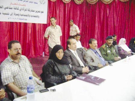 لحج /عادل قائد :برعاية محافظ لحج محسن النقيب اختتم يوم أمس المؤتمر الفرعي لاتحاد نساء اليمن بمحافظة لحج أعماله بنجاح بإشراف عضوي اللجنة التحضيرية العليا للاتحاد العام لنساء اليمن رضية شمشير علي ووفاء أحمد علي ومكتب الشؤون الاجتماعية والعمل.وقد تم انتخاب “ 25”عضوة للجنة المحافظة برئاسة الأخت فاطمة سعيد الحاج رئيسة للفرع و”12” مندوبة للمؤتمر العام وذلك بحضور “ 89” مندوبة وانعقد المؤتمر تحت شعار ( نحو تعزيز مشاركة المرأة في كافة مناحي الحياة السياسية والاقتصادية والاجتماعية وصولاً إلى تنمية مستدامة) وقد حضر الجلسة الافتتاحية للمؤتمر الأخ ياسر اليماني وكيل المحافظة وحسن كندش مدير عام الشؤون الاجتماعية والعمل .وفي المؤتمر ألقى الأخ محسن النقيب محافظ لحج كلمة توجيهية أكد فيها دعم السلطة المحلية للفرع من أجل تنفيذ مهامه وتفعيل نشاطه بين أوساط النساء مثمناً الدور الإيجابي للفرع وما أنجزه من فعاليات قيمة.كما ألقيت الأخت فاطمة سعيد الحاج رئيسة الاتحاد كلمة استعرضت فيها الإنجازات التي تحققت وما حظيت به المرأة من اهتمام كبير من قبل القيادة السياسية ممثلة بفخامة الأخ علي عبدالله صالح رئيس الجمهورية الذي يولي اتحاد نساء اليمن أهمية استثنائية .كما ألقيت في المؤتمر كلمتان من قبل الأخت هدى ضرغام عن المرأة العسكرية وعيشه فرج عن دائرة المرأة للاتحاد العام لعمال اليمن.وبعد نقاشات أقر المؤتمر وبالإجماع التقرير الإداري والمالي لفترة أربع سنوات وأصدر المؤتمر بياناً أشاد فيه بالإنجازات التي حققها الفرع على مستوى الأوضاع الداخلية للمديريات والعلاقة مع منظمات المجتمع المدني والمؤسسات الحكومية والمنظمات الداعمة كما أقر الوثائق المقدمة.وأدان المؤتمر الأحداث الإجرامية في محافظة صعدة التي تحصد فيها أرواح أبناء شعبنا المدنيين والعسكريين وتهدف إلى زعزعت الأمن والاستقرار في البلاد وبارك المؤتمر الخطوة الإجرائية لفخامة الأخ القائد علي عبدالله صالح رئيس الجمهورية الهادفة ترسيخ الديمقراطية في بلادنا من خلال انتخاب المحافظين لتوسيع صلاحيات الحكم المحلي.وأوصى المؤتمر الهيئة القيادية المنتخبة باستكمال برنامج تدريب القيادات الوسطى في المديريات لمواكبة التطور الجاري في نشاط منظمات المجتمع المدني، وأوصى السلطة المحلية بالمحافظة بتمكين المرأة سياسياً واقتصادياً واجتماعياً وإدارياً في الخطط التنموية للمحافظة.وأشاد المؤتمر بدور المكتب التنفيذي للاتحاد العام لنساء اليمن في مساعدة فرع الاتحاد وإدخال مشاريع مدرة للدخل والعمل على إنشاء مشاريع جديدة في المديريات والمراكز بهدف تنمية موارد الاتحاد .حضر الجلسة الافتتاحية الأخ ياسر اليماني وكيل المحافظة وحسن كندش مدير عام مكتب الشؤون الاجتماعية والعمل والعميد احمد صالح عمر مدير أمن المحافظة وقاسم لبوزه عضو المجلس المحلي بالمحافظة ومديرو العموم ومنظمات المجتمع المدني.