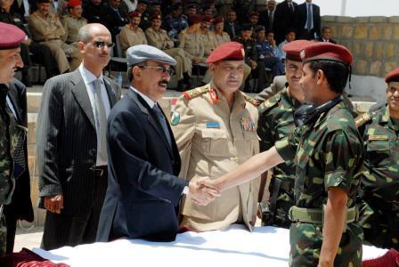 صنعاء / سبأ :شهد فخامة الرئيس علي عبدالله صالح رئيس الجمهورية القائد الأعلى للقوات المسلحة الاحتفال الذي أقامته قيادة الحرس الجمهوري أمس بمناسبة تخرج عدد من الدورات التخصصية من الحرس الخاص. وفي الحفل الذي بدأ بآي من الذكر الحكيم تلاوة الجندي عرفات السلفي, ألقى نائب رئيس الوزراء لشئون الدفاع والأمن الدكتور رشاد محمد العليمي كلمة عبر فيها عن اعتزاز القيادة والدولة والحكومة بالرجال الأبطال من أبناء القوات المسلحة الذين بتخرجهم سيضيفون دماء جديدةً ورافداً قوياً لمؤسسة الوطن الشامخة القوات المسلحة والأمن. وقدم الدكتور العليمي التهاني باسم فخامة الأخ الرئيس القائد الأعلى للقوات المسلحة للخريجين على نجاحهم المتميز واجتيازهم المقتدر للدورات التخصصية التي عكست المستوى المتقدم الذي وصل إليه منتسبو القوات المسلحة والأمن.. وكفاءتهم العالية في الاستيعاب والتعامل مع كل فنون القتال المتطورة والحديثة، ويعكس أيضاً مدى رعاية واهتمام فخامة الرئيس القائد وحرصه المستمر على المضي قدماً بجوانب البناء والتحديث والتطوير لقواتنا المسلحة والأمن.. وبما يمكنها من الانتقال إلى مراحل متقدمة من بنائها النوعي المواكب لطبيعة ومقتضيات مهامها وواجباتها الوطنية المقدسة.[c1]* التفاصيل راجع صفحة متابعات إخبارية .[/c]
