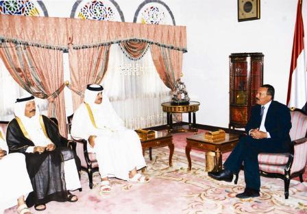 صنعاء / سبأ :أستقبل فخامة الاخ الرئيس علي عبدالله صالح رئيس الجمهورية امس ومعه الاخ عبدربه منصور هادي نائب رئيس الجمهورية سمو الشيخ تميم بن حمد بن خليفة آل ثاني ولي عهد دولة قطر الشقيقة الذي يزور بلادنا حاليا . و نقل لفخامة الاخ الرئيس تحيات اخية سمو الشيخ حمد بن خليفة ال ثاني امير دولة قطر وتمنياته له بموفور الصحة والسعادة ولشعبنا اليمني مزيداً من التقدم والازدهار . وجرى خلال المقابلة تناول العلاقات الاخوية والتعاون المشترك بين البلدين ومنها التعاون في المجال الاستثماري بالاضافة الى تناول الاوضاع في المنطقة . كما جرى الحديث حول مشروع الريان السياحي الاستثماري الذي تم تدشينه امس بتكلفة 560 مليون دولار.وقد اشاد فخامة الاخ الرئيس بمستوى العلاقات الاخوية بين اليمن ودولة قطر، مؤكداً الحرص على تعزيزها وتطويرها ولما فيه تحقيق المصالح المشتركة للبلدين .. مجددا الترحيب بالاستثمارات القطرية في اليمن وأكد بانها ستلقى كامل الرعاية لما يحقق مصلحة البلدين والشعبين الشقيقن .كما اشاد فخامة الاخ الرئيس بالجهود التى بذلتها دولة قطر من أجل رأب الصدع في الصف الوطني اللبناني ولما تم التوصل اليه بين الاطراف اللبنانية في اتفاق الدوحة ولما فيه مصلحة لبنان وامنه واستقراره ووحدته الوطنية . وقد حمل فخامة الاخ الرئيس ولي العهد القطري نقل تحياته لاخيه سمو الشيخ حمد بن خليفة ال ثاني امير دولة قطر الشقيقة تمنياته له بموفور الصحة والسعادة وللشعب القطري الشقيق المزيد من التطور والنماء . حضر اللقاء الاخوة نائب رئيس الوزراء للشؤون الاقتصادية وزير التخطيط والتعاون الدولي عبدالكريم الارحبي ووزير المالية نعمان الصهيبي ووزير الصناعة والتجارة الدكتور يحيى المتوكل وامين عام رئاسة الجمهورية عبدالله حسين البشيري ورئيس الهيئة العامة للاستثمار صلاح العطار ورئيس الهيئة العامة للاراضي والمساحة والتخطيط العمراني يحيى عبدالله دويد وسعد صبرة رئيس المؤسسة القابضة للتنمية الاستثمارية و العقارية.ومن الجانب القطري يوسف حسين كمال وزير المالية ووزير الاقتصاد بالانابة، والرئيس التنفيذي لشركة الديار القطرية المهندس ناصر حسن الانصاري والسفير القطري بصنعاء جاسم بن عبدالعزيز البوعينين .