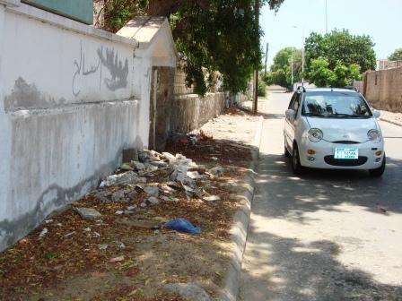 تصوير وتعليق/ علي الدرب:من يشاهد ممرات المشاة في حي السفارات خور مكسر عدن وماينتشر على ارضيتها الترابية من مخلفات البناء والاشجار وهذا حال كثير من شوارع أحياء خور مكسر يستغرب ويتساءل ماهو موقف قيادة محافظة عدن من ذلك؟ أين هي مشاريع التبليط والتجميل؟ إضافة إلى بقاء الحفرة الموجودة في وسط الطريق خلف السفارة الصينية والتي تطرقنا إليها في عدد سابق عسى ان يتم نزول المختصين ووضع حد لخطورة بقائها بهذا الشكل وماتسببه من مضايقة للمارة وتشويه للمنظر العام .