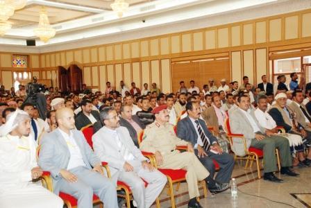 رئيس الجمهورية أثناء القاء كلمته في الملتقى الشبابي لأبناء مديريات ردفان أمس