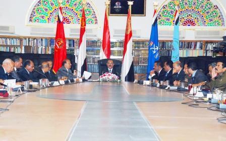 صنعاء/سبأ:أكد مجلس الدفاع الوطني أن الحرب على الإرهاب لاهوادة فيها، وان القوات المسلحة والامن لن تتهاون ابدا وستتصدى بحزم وبقوة لكل من تسول له نفسه المساس بأمن الوطن واستقراره. جاء ذلك في اجتماعه الذي عقده أمس برئاسة فخامة الرئيس علي عبدالله صالح رئيس الجمهورية القائد الاعلى للقوات المسلحة وبحضور عدد من الوزراء والقادة العسكريين والامنيين . وقد وقف الاجتماع امام العديد من القضايا والتطورات السياسية على الصعيد الوطني والعربي والدولي، وفي مقدمتها التطورات الجارية في فلسطين والاوضاع الاقتصادية والتنموية والمعالجات المتخذة من قبل الحكومة في هذا الجانب، كما وجه مجلس الدفاع الوطني الحكومة بسرعة اعداد الدراسات لاستهداف عشرة ملايين مواطن ضمن حالات الضمان الاجتماعي، في اطار توسيع شبكة الأمان الاجتماعي وبحيث تشمل أوسع قطاع ممكن في المجتمع .[c1]التفاصيل راجع صفحة متابعات اخبارية[/c]