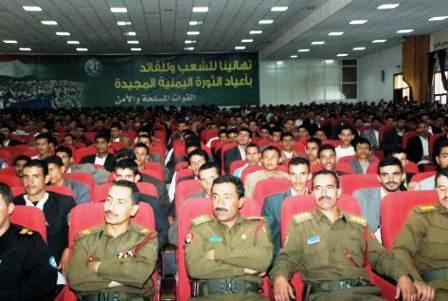 وأضاف فخامته لقد زالت عهود الامام والتشطير واعاد شعبنا تحقيق وحدته مقترنة بالديمقراطية والتأم شمل الاسرة اليمنية من المهرة الى صعدة ومن صعدة الى عدن ومن الحديدة الى حضرموت ومن ذمار الى لحج ومن كل انحاء الوطن اليمني الواحد وهذه هي عظمة الوحدة .وأشار الى أن مخلفات الامامة والاستعمار قد انتهت ولن يبقى في الوطن إلا جيل الوحدة وهو الجيل النظيف الجديد امل الامة وهذا الجيل هو الذي ترعرع في كنف الوحدة وهو الذي سيدافع عنها ويصونها ويحافظ على ديمومتها ورسوخها جيل يمثل اليمن الجديد يمن الوحدة والديمقراطية والتنمية والتقدم الحضاري .وأكد الى أن القوات المسلحة والامن سوف تحظى بكل الاهتمام والرعاية من اجل تعزيز قدرتها الدفاعية والأمنية والاهتمام بمنتسبيها والارتقاء بمستواهم معيشياً واعداداً وتاهيلاً ..مشيراً إلى أن مسيرة البناء والتحديث متواصلة في هذه المؤسسة الوطنية الكبرى وعلى مختلف الاصعدة متمنياً للجميع التوفيق والنجاح .رافق الرئيس خلال زيارته نائب رئيس الوزراء لشؤون الدفاع والامن الدكتور رشاد العليمي ووزير الداخلية اللواء الركن مطهر المصري .