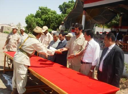 عدن / سبأ: كرمت اللجنة الوطنية للتعامل مع الالغام أمس (129) كادرا من منتسبي البرنامج الوطني للتعامل مع الالغام فرع عدن، لجهودهم المتميزة في اداء الواجب.وفي الحفل-الذي حضره محافظ محافظة عدن الدكتور عدنان الجفري- ثمن رئيس اللجنة الوطنية للتعامل مع الالغام قاسم الاعجم،الجهود والتضحيات الكبيرة التي يقدمها منتسبو البرنامج من أجل تطهير وتصفية الاراضي من الالغام وجعلها آمنة امام المواطنين للعيش والعمل بطمأنينة.وأشاد بتعاون السلطات المحلية في المحافظات وتقديم التسهيلات اللازمة في نزع الالغام وتطهير اراضي المحافظات من الالغام، وكذا انجاز اراضي الجمعية السكنية لمنتسبي البرامج في محافظة عدن.