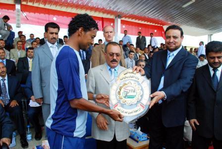 صنعاء / سبأ:كرم فخامة الأخ الرئيس علي عبدالله صالح رئيس الجمهورية أمس فريق هلال الحديدة لإحرازه بطولتي دوري الدرجة الأولى لكرة القدم وكأس رئيس الجمهورية لهذا الموسم في أول انجاز يحققه الفريق .وهنأ فخامة الأخ الرئيس رئيس وأعضاء الهيئة الإدارية والجهاز الفني والإداري واللاعبين بالنادي خلال استقباله لهم أمس بهذا الانجاز الذي حققه الفريق لأول مرة في تاريخه.. مشيداً بالجهود التي بذلها لاعبو الفريق في إحراز البطولتين في موسم واحد .وأكد فخامته أهمية مواصلة جهود تطوير المنافسات الرياضية لخلق روح التنافس الشريف بين شباب الأندية وإبراز إبداعاتهم وتنمية مهاراتهم ومواهبهم في مختلف الألعاب الرياضية .. متمنياً لنادي الهلال وبقية الأندية بعموم محافظات الجمهورية المزيد من التفوق والنجاح في كافة الألعاب الرياضية .