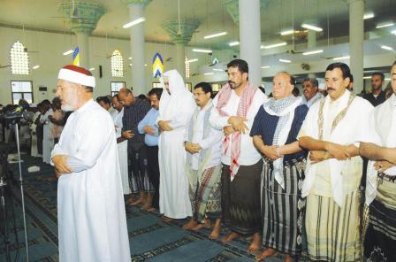 عدن / سبأ :أدى الأخ عبدربه منصور هادي نائب رئيس الجمهورية صلاة الجمعة مع جموع المصلين في جامع الخير بمنطقة خور مكسر « ساحل ابين» بمدينة عدن ومعه الإخوة محافظ عدن عدنان الجفري وأمين عام المجلس المحلي بالمحافظة عبدالكريم شايف ومدير أمن المحافظة العميد الركن عبدالله قيران وعضو مجلس النواب الدكتور عبدالباري الدغيش ومديرعام مكتب الصحة الخضر لصور وعدد من المسئولين في المحافظة .وتناول الخطيب في خطبتي الجمعة المحاسن العظيمة لشهر الصوم والتعبد, مسشهدا بحديث رسول الله صلى الله عليه وسلم (من صام رمضان وأتبعه ستاً من شوال فكأنما صام الدهر كله ) وذلك لما للصيام من فضل كبير واجر عظيم وثمار طيبة خص بها الله نفسه كما جاء في الحديث القدسي ( كل عمل ابن آدم له ,إلا الصيام , فإنه لي , وأنا أجزي به).وأشار الخطيب إلى أهمية الوئـــام وتعزيز التوحد بين أبناء المجتمع عملا بقوله الله سبحانه وتعالى (( وَأَطِيعُواْ اللّهَ وَرَسُولَهُ وَلاَ تَنَازَعُواْ فَتَفْشَلُواْ وَتَذْهَبَ رِيحُكُمْ وَاصْبِرُواْ إِنَّ اللّهَ مَعَ الصَّابِرِينَ )).ولفت الخطيب إلى أهمية أن يحرص المؤمن على العمل من أجل الأخرة ويتجنب أن تغريه الحياة الدنيا وتجعله ينسى آخرته ويكرس حياته للبحث عن مكاسب دنيوية زائلة ويلهث وراء المصالح الخاصة والآنية باعتبار أن من كانت الدنيا اكبر همه فقد فقد الاستشعار بضرورة العمل لآخرته ..مشدداً على ضرورة التسامح مع الأهل والأقارب وكذلك الاصدقاء وعامة الناس بإعتبار التسامح من السمات الحميدة التي يحثنا عليها ديننا الإسلامي الحنيف.