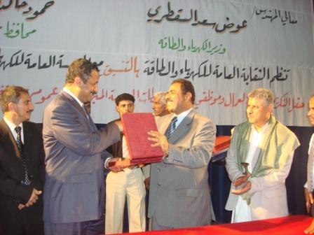 تعز / نعائم خالد :أبدى الأخ المهندس عوض السقطري وزير الكهرباء والطاقة استعداد الوزارة للعمل على تثبيت المتعاقدين في قطاع الكهرباء في محافظة تعز ممن امضوا فترات طويلة في العمل وتوفير الدرجات الوظيفية لهم . وأشاد الأخ الوزير في كلمة له في حفل تكريم 485 عاملاً وعاملة ومتقاعداً من مختلف مناطق كهرباء الجمهورية الذي نظمته أمس المؤسسة العامة للكهرباء والنقابة العامة للمؤسسة وإدارة منطقة تعز أشاد بالعاملين والمهندسين في منشآت الكهرباء في مختلف محافظات الجمهورية لجهودهم المتواصلة في الحفاظ على مستوى أداء منشآت قطاع الكهرباء رغم ما يعانية هذا القطاع من صعوبات كبيرة . وقال المهندس السقطري إن تلك الجهود قد أثمرت خلال اليومين الماضيين رفع الطاقة التوليدية في المحطات العاملة ولأول مرة إلى 880 ميجاوات. [c1]* التفاصيل راجع صفحة متابعات اخبارية[/c]