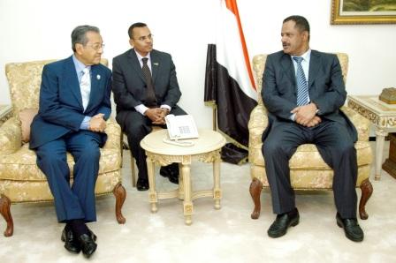 المكلا / سبأ :التقى رئيس مجلس الوزراء الدكتور علي محمد مجور أمس بمدينة المكلا محافظة حضرموت رئيس الوزراء الماليزي السابق الدكتور مهاتير محمد الذي يشارك في مؤتمر (الصناعة مستقبل اليمن) الذي بدأ أعماله أمس بالمكلا.حيث جرى استعراض علاقات التعاون اليمني الماليزي في المجالات الاقتصادية والثقافية وآفاقها المستقبلية وعلى وجه الخصوص سبل تطوير العمل الاستثماري المشترك في القطاعات النفطية والمعدنية والصناعات التحويلية والسياحة والثروة السمكية وتأكيد الاستفادة من التجربةالاقتصادية الماليزية المتميزة التي قادها الدكتور مهاتير محمد.وأكد الدكتور مجور الحاجة إلى التطوير المؤسسي لعلاقات التعاون بين البلدين الشقيقين على المستويين الحكومي والقطاع الخاص وتبادل المعلومات حول الطرق الاستثمارية المتاحة .. مشيرا إلى إمكانية الاستفادة من التجرية الماليزية وتطبيقها في اليمن بما يعزز عملية التنمية الاقتصادية والبشرية.من جانبه أبدى الدكتور مهاتير محمد استعداد ماليزيا تقديم خبرتها في المجالين الصناعي والتنمية البشرية, وذلك خدمة لتوجه اليمن في التنمية الصناعية .. مشيرا في الوقت نفسه إلى تقدير ماليزيا الشقيقة للدور البارز للرواد من المهاجرين اليمنيين الذين ساهموا في نشر الإسلام وبناء ماليزيا.منوها بأن الماليزيين من أصول يمنية لازالوا يمثلون عامل ربط قوي بين البلدين الشقيقين ويساهمون في تعزيز عملية التواصل وتطوير العلاقات الثنائية.حضر اللقاء الاخوة كل وزير الدولة مدير مكتب رئيس الوزراء عبد الرحمن طرموم ووزير شئون المغتربين احمد مساعد حسين وزير المالية ونعمان الصهيبي ووزير التعلم الفني والتدريب المهني الدكتور إبراهيم عمر حجري ووزير النفط والمعادن أمير العيدروس ومحافظ محافظة حضرموت سالم الخنبشي وعدد من المسئولين في الحكومة.