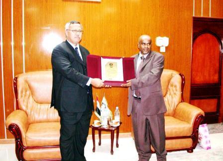 عدن/ 14 أكتوبر / عبدربه محسن عبدربه: تم صباح أمس في ديوان رئاسة جامعة عدن التوقيع على البرنامج التنفيذي لاتفاقية التعاون العلمي والثقافي بين جامعتي عدن وجيبوتي وقعها عن جانب جامعة عدن د. عبدالعزيز صالح حبتور رئيس الجامعة - وعن الجانب الجيبوتي الدكتور فهمي أحمد محمد رئيس جامعة جيبوتي. وخلال جلسة المباحثات بين الطرفين أشاد د. بن حبتور بالعلاقة الحميمة بين الجامعتين وسبل الارتقاء بها دعماً للعلاقات الأخوية التاريخية بين الشعبين الشقيقين مؤكداً تسخير جامعة عدن لخبراتها وإمكاناتها في تطوير جامعة جيبوتي الفتية تنفيذاً لتوجيهات القيادة السياسية ،مشيراً إلى حرص جامعة عدن واهتمامها بتعزيز حضور اللغة العربية في الجامعات العربية عموماً وفي جيبوتي بوجه خاص لتحل تدريجياً محل الفرنسية دعماً لجهود الأشقاء في جيبوتي بهذا الاتجاه من جهته عبر رئيس جامعة جيبوتي عن ارتياحه للعلاقة القائمة بين الجامعتين ، مؤكداً أنها الأكثر نفغماً ومردوداً من بين جميع علاقاتها مع الجامعات الأخرى ، متمنياً دعم جامعة عدن لبرامجها التعليمية ووضع خبراتها وكفاءة أساتذة للنهوض بجامعة جيبوتي .. مشيراً إلى احتفال جامعته هذا العام يتخرج الدفعة الأولى من طلاب إدارة الأعمال الذين درسوا باللغة العربية والتي أنثئت بجهود جامعة عدن ، معرباً عن شكره وتقدير القيادة السياسية في بلاده لهذا الدعم. وحدد البرنامج التنفيذي الذي وقع عليه مهام وإلتزامات الجامعتين خلال العامين ادارسين القادمين ، حيث نصت على أن تعد جامعة عدن مشروع برنامج دراسي نظام بكلاريوس في مجالي المحاسبة واللغة العربية وتطوير إدارة الأعمال إلى نظام البكلاريوس وتقديمها لجامعة جيبوتي مراجع وكتبتاً باللغة العربية في مجالات إدارة الأعمال والمحاسبة واللغة العربية وتوفير ثلاثة مقاعد مجانية للدراسات العليا (ماجستير) للمعيدين الدارسين باللغة العربية في جامعة جيبوتي وتتكفل جامعة جيبوتي برفد قسم اللغة الفرنسية في جامعة عدن بثلاثة يدرسين مؤهلين للإسهام في التدريب وألقاء المحاضرات إضافة إلى تبادل الزيارات والمشاركة في المؤتمرات والوفود الطلابية. حضر مراسم التوقيع وجلسة المباحثات د. سعيد عبده جبلي نائب رئيس الجامعة للشؤون الأكاديمية والدكتور أحمد علي الهمداني نائب رئيس الجامعة لشؤون الدراسات العليا والدكتور ناصر علي ناصر نائب رئيس الجامعة لشؤون الطلاب وعدد من قيادات الجامعة ومرافقي رئيس جامعة جيبوتي.