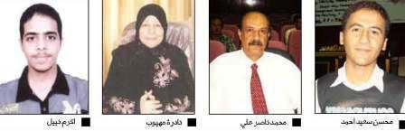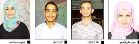 1 -هبة الله احمد علي إبراهيم 2 -هبة عبدالله احمد العمودي 3 -شذى عبدالله عبدالمجيد محمد 4 -ليليان خلدون خليل عبده 5 -مروى صالح سالم علي 6 -مها علي خالد سالم 7 -هدى محمد احمد سالم 8 -عبير علي قاسم علي 9 -ليلى مرشد صلاح العمودي 10 - الهام احمد عبدالله سعيد11 - هند احمد علي عوضكما كرم د.عبدالعزيز بن حبتور بالميدالية الذهبية للذكرى الأربعين لتأسيس جامعة عدن كلا من الشيخ المهندس عبدالله بقشان والشيخ محمد حسين العمودي تقديرا لجهودهما ودورهما في إبراز الإنتاج الأدبي والفكري للأديب و المفكر علي احمد باكثير في ذكرى مئويته. بينما كرمت عمادة ثانوية البيحاني النموذجية للبنين الشيخ عبدالله بقشان بدرع الثانوية تقديرا لما قدمه ويقدمه لطلاب وطالبات مدارس محافظة عدن النموذجية وخصت بالذكر ثانوية البيحاني، ومنحته الرئاسة الفخرية لمجلس أولياء الأمور فيها .وكان للصحيفة لقاءات مع عدد من المكرمين: والبداية كانت مع الأستاذة نادرة مهيوب سلطان الجنيد عميدة ثانوية “عدن” النموذجية للبنات المتفوقات والموهوبات التي قالت: (هذه الثانوية تستقطب أوائل الطالبات بمحافظة عدن وتحتضنهن جميعا سواء كن متفوقات أو موهوبات تحت رعاية إدارة مكتب التربية والتعليم بالمحافظة.وأنا جدا سعيدة واشعر بالفخر بتكريم بناتي الطالبات المتفوقات وأؤكد أن طالبات المدرسة كلهن متفوقات والتنافس شديد بينهن وهنا اشكر منظمي الحفل على هذه اللفتة الطيبة والخيرة من شخصيات تقدر العلم والمعرفة، واخص بالذكر الشيخ بقشان السباق دائما لعمل الخير ورعاية المتفوقين).ثم تحدث الأستاذ محمد ناصر علي عميد ثانوية (البيحاني) النموذجية للبنين بعدن قائلاً: (سعداء جدا بهذا التكريم ، وسعيدون بأنه يتم في رحاب جامعة عدن الصرح التعليمي الكبير على مستوى المحافظة واليمن وسعداء أكثر بان هناك اهتماماً كبيراً جدا بالطلاب المتفوقين والموهوبين، وان يكرموا من قبل هامات كبيرة وبرعاية كريمة من الشيخ المهندس عبدالله بقشان و د. عبدالعزيز صالح بن حبتور رئيس جامعة عدن ومكتب التربية والتعليم بالمحافظة واشكرهم كثيرا على هذا التكريم، ومدرستنا صارت رقماً كبيراً وبما تحصده في نتائج الثانوية العامة .الطالب أكرم نبيل عبدالمجيد عبدالله ( 96،62%) التوأم الطالب أمجد المكرم في الحفل قال: (شعور جميل أن تجد من يقف معك في فرحتك ويساندك في حياتك الدراسية وهذا تكريم كريم من أشخاص كرماء يقدروا العلم والمعرفة والتفوق والتميز، وفرحتي اكبر أن نتائج جهودي وأخي في مراحلنا الدراسية عامة توجناها بالتفوق وهذا ابسط شيء نقدمه لوالدينا وللوطن، وهذا النجاح ما هو إلا ثمرة جهود متواصلة لسنوات دراستنا ويشكل دافعا اكبر للمحافظة على هذا المستوى والتميز دائما وكما يقال (من جد وجد). ورغبتي دراسة هندسة اليكترونية واطمح مستقبلا بإدارة مركز لدراسات الهندسة الدقيقة. الطالبة هبة الله احمد علي الجنيدي (57 .95 ٪ ) قالت : (السبب الأول والرئيسي لتفوقي يعود لامرأة اسمها عائدة عبدالرحمن الحمادي هي والدتي، وبدونها أنا لا شيء ،هي من تستحق هذا التكريم، وستظل أمي هي الدافع لأحقق معدلات أعلى وأفضل في المستقبل والله يحفظها لنا، و هذه النتيجة ليست النهاية وإنما البداية للحياة و رغبتي في دراسة الطب البشري وبعدها التخصص في الهندسة الوراثية أو دراسة الرياضيات أو علوم الكمبيوتر في جامعة بالخارج بإذن الله .وهنا ادعو كل الطلاب إلى أن يجتهدوا و يبنوا أنفسهم ليكونوا ناساً متميزين، و ليس مجرد إنسان يحيا ويموت ليدرس ويتخصص فقط ، وأنا اطمح أن أكون إنسانة متميزة واترك بصمة في الحياة و التاريخ ويسجل اسمي بتخليد أعمالي في تخصصي” .الطالب رؤوف منيف أبوبكر و(50. 95 ٪) قال: (شعوري لا يوصف، إن قال لي احد هل أنت سعيد أقول له أنا الأسعد، سعيد جدا بهذا النجاح وأرجعه لله أولا ولوالدي ووالدتي يحفظهما الله ولخالتي فهي أمي الثانية والداعمة لي. حقيقة تألمت عندما ظهرت نتائج الثانوية العامة وشعرت بالتعب والغضب لأنني لم أتوقع أن احصل على هذا ال