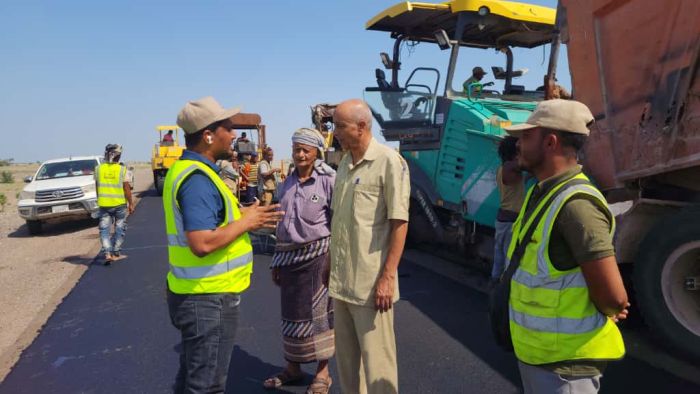 تفقد مدير عام المخا بمحافظة تعز سلطان عبدالله محمود، سير الأعمال الإنشائية في المقطع الأول من مشروع الطريق الزراعي، واطلع على ما تم إنجازه من رصف طبقة الإسفلت وتجهيز العبارات لتصريف مياه السيول، وذلك وفق المواصفات الهندسية العالمية للطرق الحديثة المخصصة للمركبات والمعدات الزراعية والتجارية.