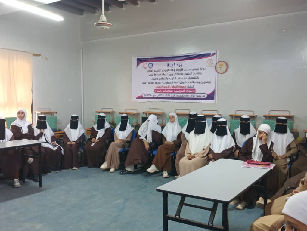 وفي هذا الإطار، شهدت ثانوية الفقيد عبدالله محيرز للبنات بمنطقة القلوعة في مديرية التواهي، انطلاق دورة تدريبية تنفذها جمعية الهلال الأحمر اليمني فرع عدن، مستهدفة نحو (100) طالبة، بإشراف مدربين متخصصين في مجالات التوعية الصحية والتنمية الشخصية.