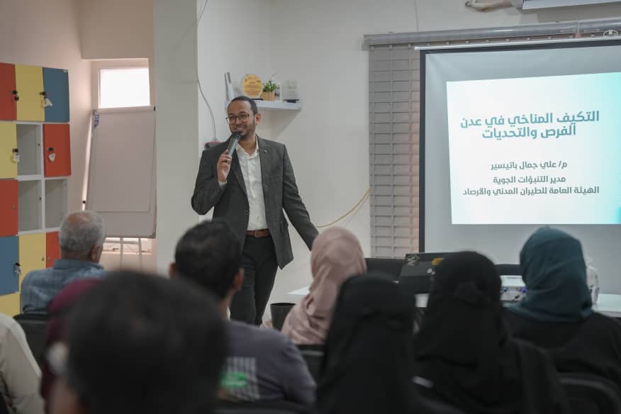 نظمت مبادرة سفراء التنمية بالشراكة مع مؤسسة الصحافة الإنسانية (hjf) ورشة عمل نوعية في عدن بعنوان "التكيف المناخي في عدن.. التحديات والفرص"، برعاية وزير المياه والبيئة ومحافظ عدن، وبدعم رئيسي من المؤسسة الطبية الميدانية (FMF)، وذلك بالتزامن مع اليوم العالمي للعمل المناخي وقبيل انعقاد مؤتمر الأطراف الدولي (COP30).