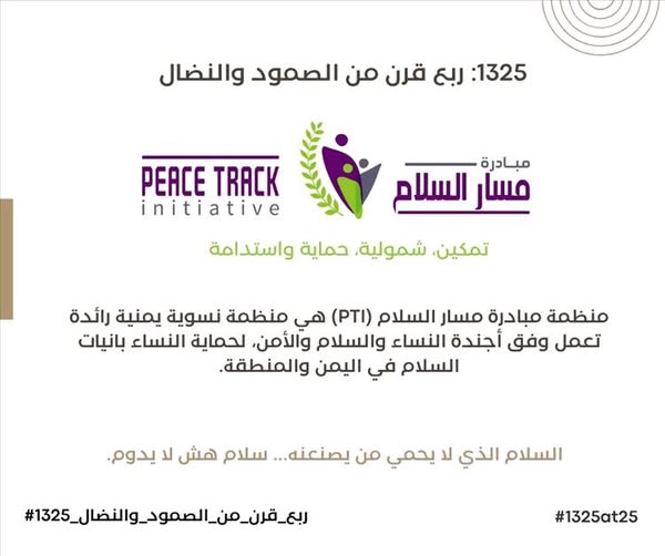 أطلقت" منظمة مبادرة مسار السلام" بالشراكة مع "شبكة التضامن النسوي"، حملة إقليمية جديدة تحت عنوان "1325: ربع قرن من الصمود والنضال"، وذلك تزامناً مع الذكرى الخامسة والعشرين لصدور قرار مجلس الأمن الدولي رقم 1325 المعني بـ "النساء والسلام والأمن".