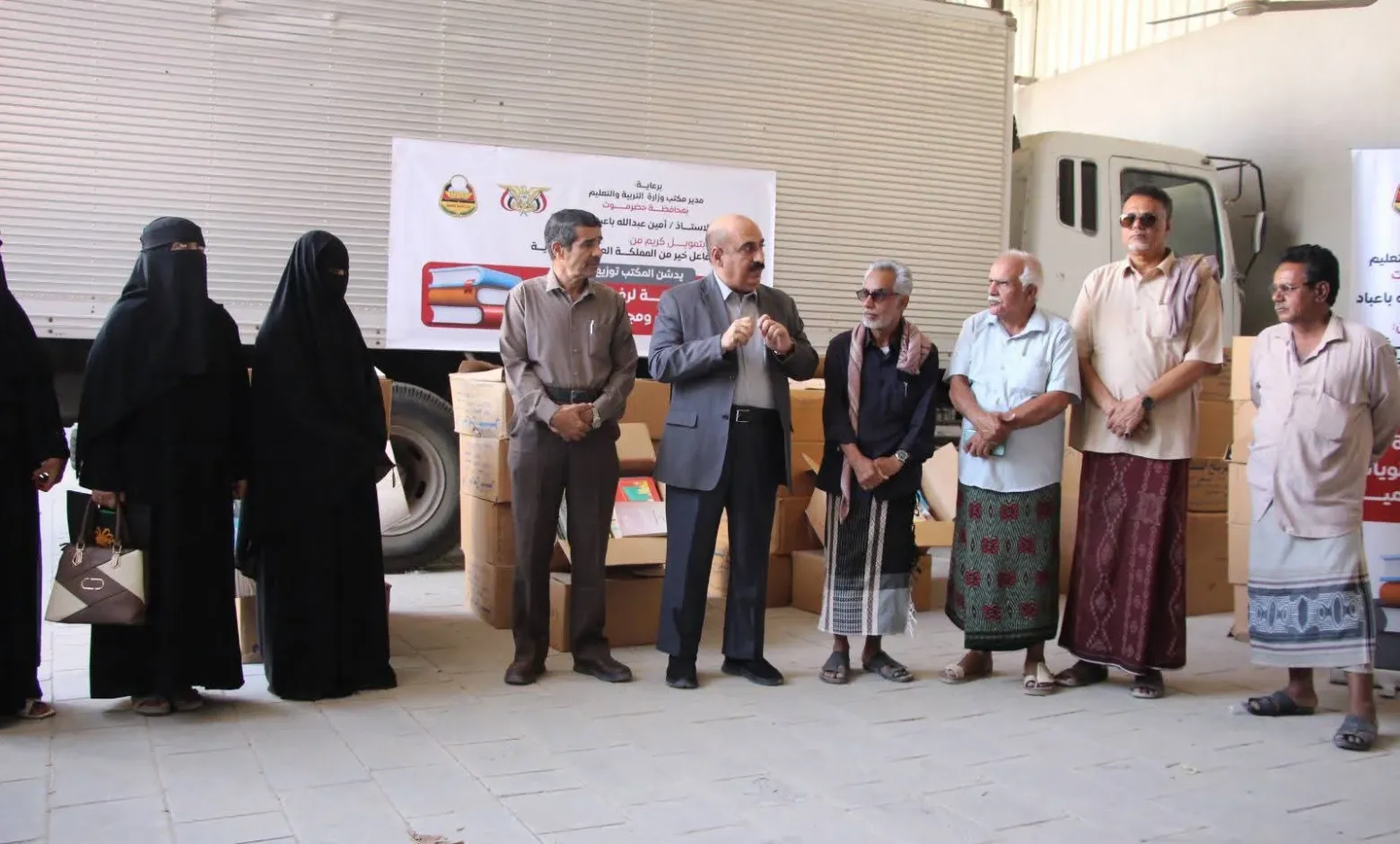 دشن الأستاذ أمين عبدالله باعباد مدير مكتب وزارة التربية والتعليم بساحل حضرموت توزيع الكتب العلمية لرفد ثماني مكتبات بثانويات ومجمعات تعليمية مقدمة من فاعل خير من المملكة العربية السعودية.
