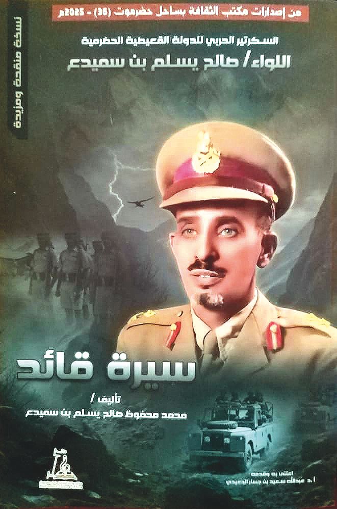 صدر مؤخرًا عن مكتب وزارة الثقافة بساحل حضرموت، كتاب جديد يُعتبر الإصدار رقم (35) في سلسلة إصداراته، تحت عنوان “سيرة قائد”، للسكرتير الحربي للدولة القعيطية الحضرمية، اللواء/ صالح يسلم بن سميدع، من تأليف محمد محفوظ صالح يسلم بن سميدع.