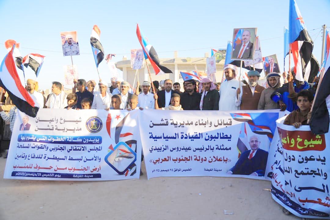 كما أعلن عبدالله قائد مسعد، رئيس مجلس تنسيق اللجنة النقابية بالشركة، مباركته لانتصارات القوات المسلحة الجنوبية، مطالبًا الرئيس الزُبيدي بإعلان دولة الجنوب العربي.