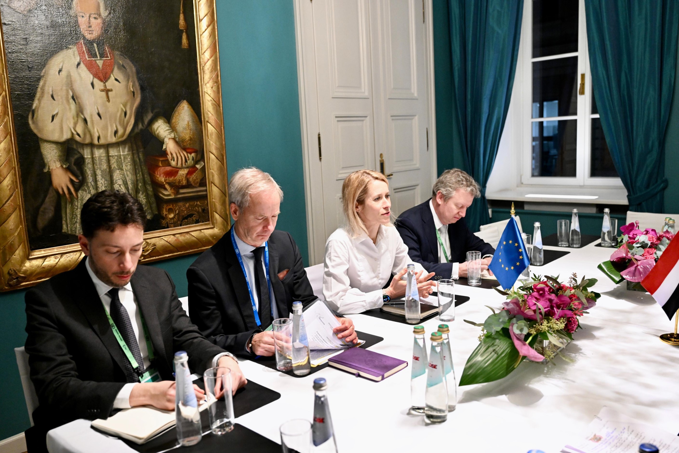 ميونيخ/14أكتوبر:التقى فخامة الرئيس الدكتور رشاد محمد العليمي، رئيس مجلس القيادة الرئاسي الممثلة العليا للشؤون الخارجية والسياسة الأمنية في الاتحاد الأوروبي كايا كالاس، وذلك على هامش اعمال مؤتمر ميونيخ للأمن الدولي.وتطرق اللقاء لعلاقات التعاون والشراكة الثنائية، اضافة الى مستجدات الاوضاع على الساحة الوطنية، والدعم الاوروبي المطلوب لتعزيز جهود الحكومة في استعادة التعافي واستدامة الخدمات الاساسية، وردع التهديد الارهابي.وثمن فخامة الرئيس موقف الاتحاد الأوروبي كأحد أكبر مانحي اليمن، إنسانيًا وتنمويًا، مؤكدا أن العلاقة مع دول الاتحاد اخذت بعدا استراتيجيا يتقاطع مع أمن الملاحة الدولية، واستقرار امدادات الطاقة والتجارة، ومكافحة الإرهاب، والحد من نفوذ النظام الإيراني عبر أذرعه المسلحة.