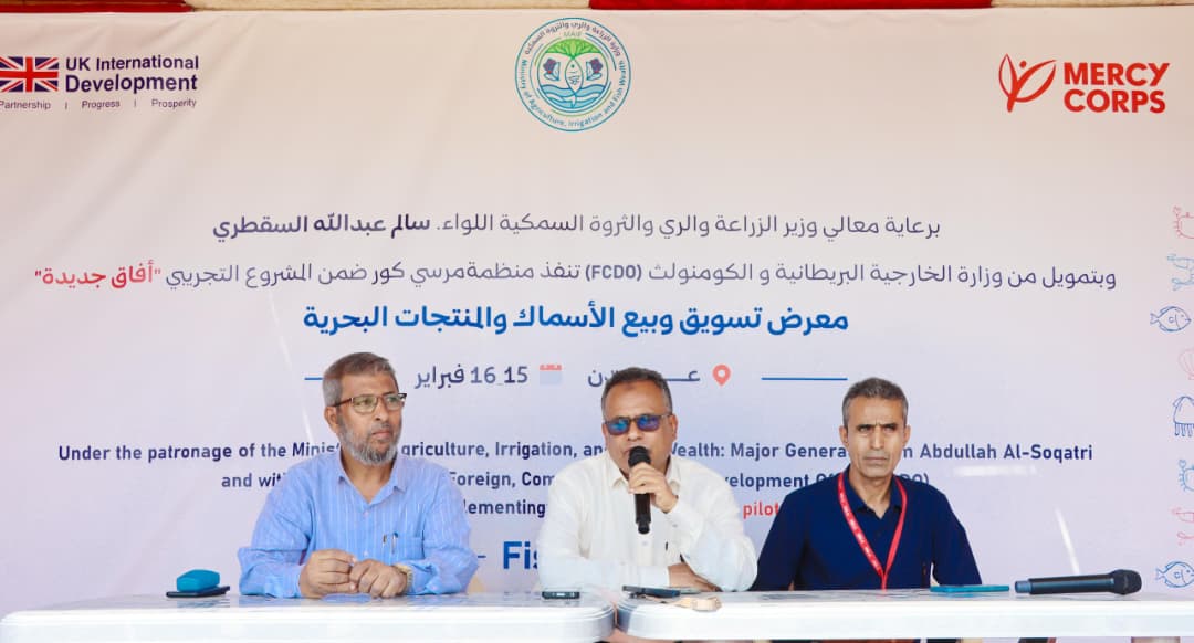 وعبر رئيس هيئة المصائد السمكية بخليج عدن، عن سعادته بتدشين بازار تسويق وبيع الأسماك والمنتجات البحرية، والذي يجمع في مساحة واحدة الصيادين والنساء الساحليات وأصحاب المصلحة لاكتشاف خيرات البحر وإبراز القيمة الاقتصادية والاجتماعية للمنتجات السمكية، مشيرا إلى أن هذا البازار الذي يشارك فيه أكثر من (١٥) جمعية سمكية بالإضافة إلى عدد من مرافق القطاع الخاص، يأتي ضمن الجهود المشتركة لدعم سُبل العيش وتحسين الدخل وتعزيز دور المرأة الساحلية في الصناعات السمكية والمأكولات البحرية والإكسسوارات المستوحاة من البيئة البحرية، مؤكدا التزام الهيئة العامة للمصائد السمكية بتنمية المجتمعات الساحلية وتمكين المرأة ودعم الأنشطة الإنتاجية الصغيرة، وتعزيز الشراكة مع الجهات المانحة والقطاع الخاص لتحقيق التنمية المستدامة، داعيا التجار إلى زيارة المعرض لشراء المنتوجات المناسبة لعرضها وبيعها في الأسواق. من جانبه أكد فيصل النظيف ممثل منظمة مرسي كور، ان هذا المعرض يأتي في إطار مشروع آفاق جديدة وبتمويل من وزارة الخارجية البريطانية والكومنولث بهدف تحسين المستوى المعيشي والاقتصادي للصيادين والأسر والمرأة الساحلية. حضر افتتاح المعرض عدد من المسؤولين وممثلي الجمعيات السمكية ..وآخرون.