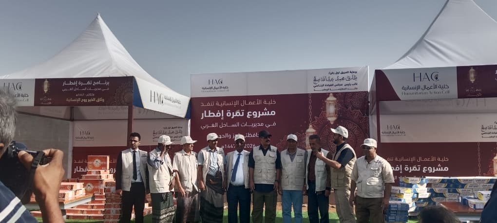 المخا/14أكتوبر/خاص:دشنت خلية الأعمال الإنسانية في المقاومة الوطنية بمدينة المخا مشروع (تمرة إفطار) والذي يشمل كافة مديريات الساحل الغربي بمحافظتي تعز والحديدة للعام 2026م -1447هـ .تقدم تدشين المشروع الأمين العام للمكتب السياسي عبدالوهاب العامر، ومدير عام مديرية المخا سلطان محمود، ومدير عام مديرية الخوخة سالم عليان، ومدير عام مديرية ذوباب المندب عبدالقوي الوجيه، ومدير عام مديرية موزع عبدالكريم حيدر، ومدير عام مديرية الوازعية علي الظرافي، ومدير عام مديرية حيس مطهر القاضي، ومدير الخلية الإنسانية عبدالله الحبيشي.وخلال التدشين أشار العامر إلى أن مشروع (تمرة إفطار) يأتي برعاية كريمة من عضو رئيس مجلس القيادة الرئاسي الفريق أول ركن طارق صالح، وتستفيد منه 15 ألف أسرة، مؤكداً نحن اليوم نقوم بتدشين برنامج الخلية الإنسانية الرمضاني والذي يهدف إلى التخفيف من معاناة المواطنين في المديريات الساحل الغربي بمحافظتي تعز والحديدة، مؤكدا أن برنامج الخلية الإنسانية الرمضاني لهذا العام كبير.بدورهم أشاد مدراء عموم مديريات الساحل الغربي بمحافظتي تعز والحديدة بالجهود الإنسانية التي تبذلها خلية الأعمال الإنسانية للمقاومة الوطنية خلال شهر رمضان الفضيل، والتي تسهم بشكل مباشر في تعزيز التكافل الاجتماعي، وترسيخ قيم التعاون والتراحم تخدم المجتمع وتلامس احتياجاته.