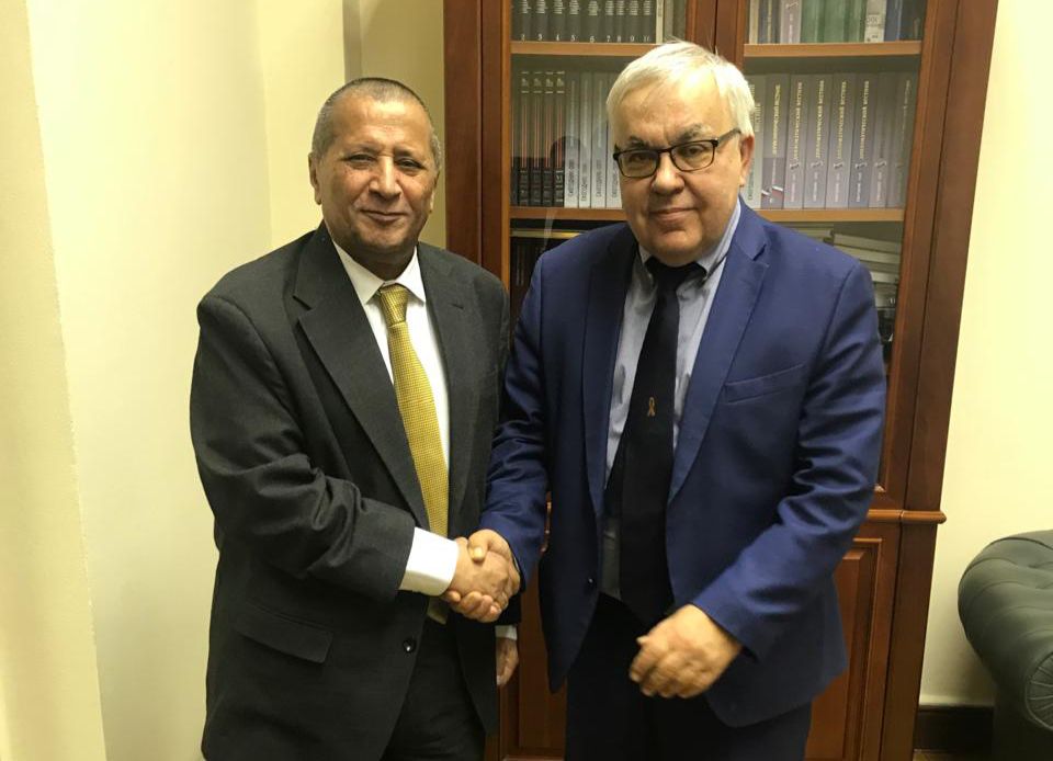 موسكو/14أكتوبر:بحث سفير اليمن لدى روسيا، الدكتور أحمد الوحيشي، اليوم، مع نائب وزير الخارجية الروسي لشؤون المنظمات الدولية، الكسندر عليموف، سبل تعزيز التعاون الثنائي بين البلدين الصديقين في المجال الاقتصادي والإنساني.وتناول الجانبان، تطورات الأوضاع وجهود إحلال السلام في اليمن، إضافة الى مستجدات الاوضاع في المنطقة على خلفية الاعتداءات الايرانية التي استهدفت عددا من الدول العربية.من جانبه، اكد نائب وزير الخارجية الروسي لشؤون المنظمات الدولية، دعم روسيا لجهود الأمم المتحدة لإنهاء الحرب وتحقيق الأمن والاستقرار في اليمن.*سبأنت