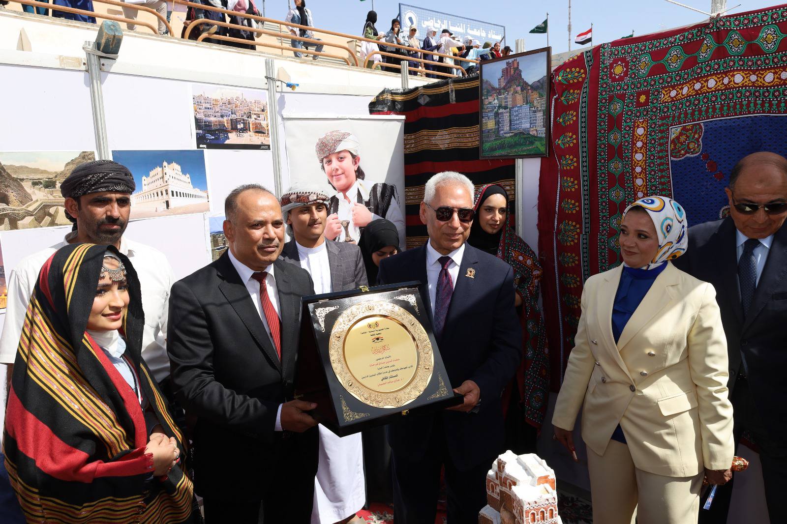 كرم المستشار الثقافي بسفارة الجمهورية اليمنية في القاهرة، الدكتور هادي الصبان، وزير التعليم العالي والبحث العلمي بجمهورية مصر العربية الدكتور عبدالعزيز قنصوة، ورئيس جامعة المنيا الدكتور عصام فرحات، بدرع الملحقية الثقافية، تقديراً لجهودهم الملموسة في دعم ورعاية الطلبة اليمنيين الدارسين في الجامعات المصرية، وذلك على هامش مشاركة الملحقية في فعاليات "ملتقى الحضارات على أرض الحضارات – عروس الصعيد"، الذي نظمته جامعة المنيا .