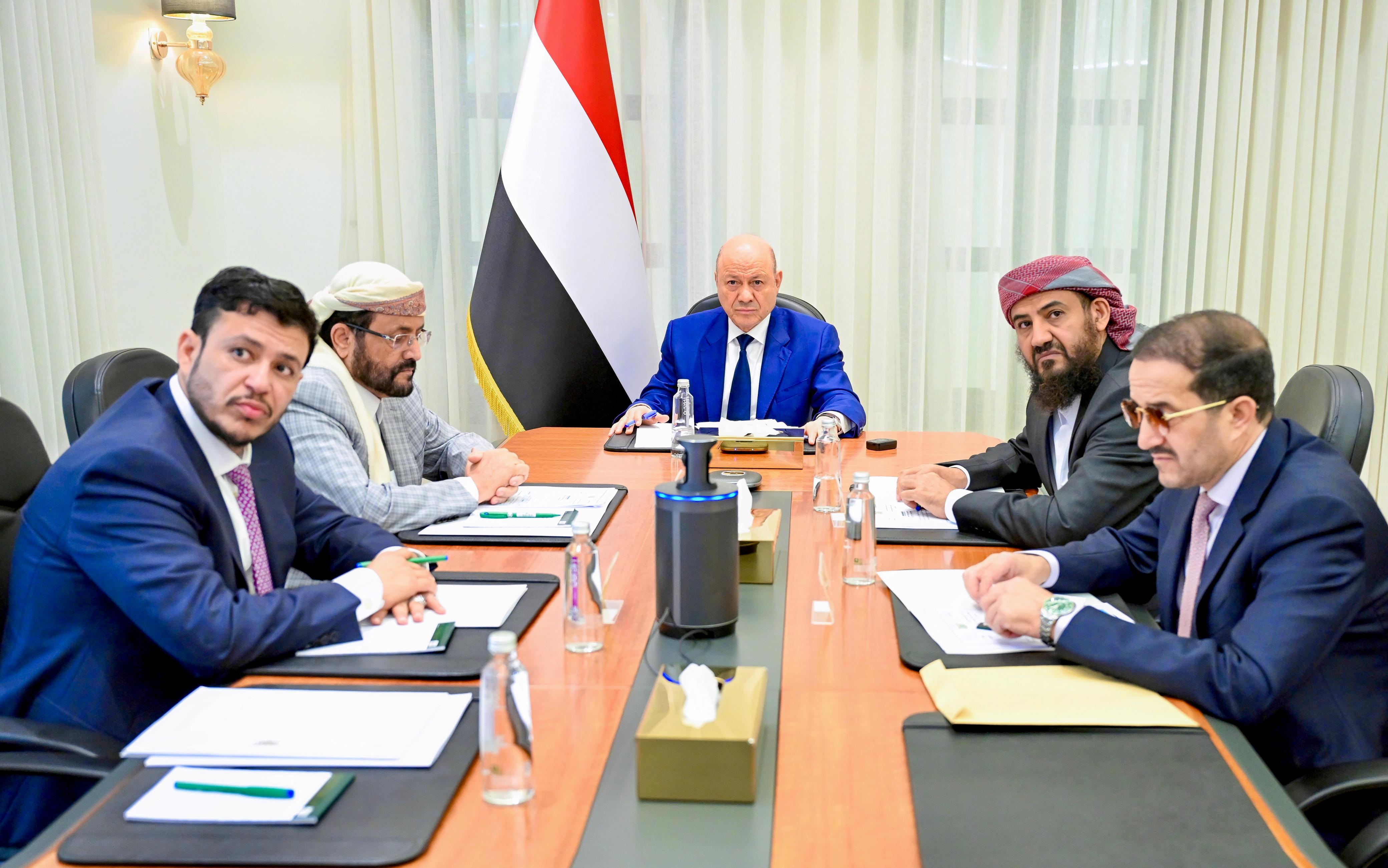 الرياض /14أكتوبر:عقد مجلس القيادة الرئاسي اليوم الخميس، اجتماعا برئاسة فخامة الرئيس الدكتور رشاد محمد العليمي، رئيس المجلس، وبحضور أعضائه، سلطان العرادة، عبدالرحمن المحرمي، الدكتور عبدالله العليمي، وعثمان مجلي، وعبر الاتصال المرئي طارق صالح، الفريق محمود الصبيحي، وسالم الخنبشي.وناقش الاجتماع المستجدات المحلية على كافة المستويات، اضافة الى تطورات التصعيد في المنطقة وانعكاساته على الامن والسلم الوطني والإقليمي، والتدابير الحكومية المتخذة للحد من تداعياتها على الاوضاع الاقتصادية والانسانية والمعيشية للمواطنين.