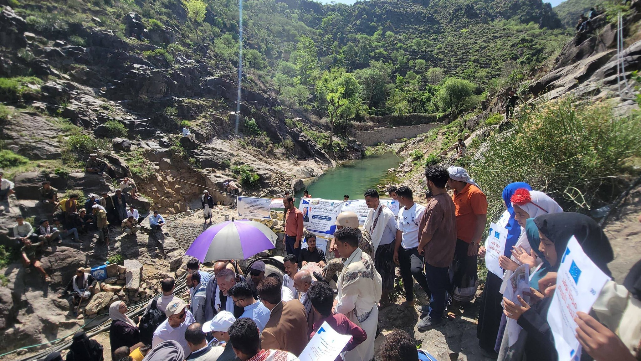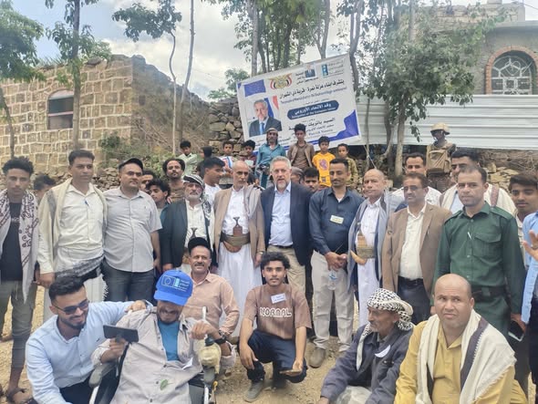 وتفقد الوفد الأوروبي سير العمل في مشروع الحاجز المائي لغيلذي الشهران بعزلة نمره، مطلعاً على حجم الإنجاز في المشروع والأثر المتوقع منه في تعزيز الموارد المائية. كما شملت الجولة زيارة جمعية الادخار، حيث عُقدت جلسات نقاشية مع أعضاء الجمعية والقطاع النسائي لمناقشة سبل تعزيز الدعم التنموي وتمكين المرأة، بما يسهم في التخفيف من معاناة المواطنين.واستمع السفير سيمونيه من مدير عام المديرية إلى شرحٍ مفصل حول أبرز التحديات الراهنة، وفي مقدمتها تدهور الوضع المعيشي، والأضرار الجسيمة التي خلفتها السيول الجارفة خلال الفترة الماضية، وما تسببت به من دمار في البنية التحتية والممتلكات العامة والخاصة.وعبر سفير الاتحاد الأوروبي عن تقديره لحفاوة الاستقبال، مؤكداً حرص الاتحاد على مواصلة دعمه للمشاريع المستدامة التي تلامس احتياجات المجتمع المحلي وتساهم في تحسين سبل العيش وتجاوز التحديات الراهنة.