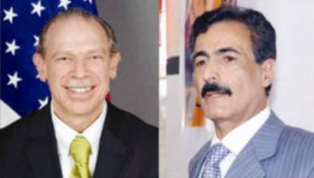 صنعاء / سبأ:التقى وزير الداخلية اللواء الركن مطهر رشاد المصري أمس السفير الأمريكي بصنعاء جيرالد فايرستاين.وجرى خلال اللقاء مناقشة أوجه التعاون الأمنيبين البلدين الصديقين وخاصة في مجال مكافحة الإرهاب وسبل تعزيزها وتطويرها. وقد ثمن وزير الداخلية الدعم الذي تقدمه الولايات المتحدة الأمريكية لبلادنا في الجوانب الأمنية ، وخاصة في مجال مكافحة الجريمة والإرهاب، منوها بمستوى العلاقات الثنائية بين البلدين الصديقين، وما تشهده من تقدم مضطرد .من جانبه أشاد السفير الأمريكي بمستوى التعاون الثنائي بين البلدين، معرباً عن أمله في أن يشهد المزيد من التقدم خلال المرحلة القادمة .. وأكد استعداد بلاده تقديم المزيد من الدعم للأجهزة الأمنية وخاصة في مجال التدريب والتأهيل.كما أشاد السفير بالمستوى المتطور الذي وصلت إليه الأجهزة الأمنية اليمنية ، والنجاحات التي حققتها في توفير الأجواء الآمنة والملائمة لبطولة خليجي 20، لافتا إلى أن تلك النجاحات دحضت كل الإشاعات والإدعاءات المغرضة التي روج لها البعض لنقل صورة مغلوطة عن الوضع الأمني في اليمن.