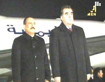 موسكو/سبأ:وصل فخامة الأخ الرئيس علي عبدالله صالح رئيس الجمهورية أمس إلى العاصمة دوشنبه في مستهل زيارة رسمية لجمهورية طاجيكستان تلبية لدعوة من فخامة الرئيس الطاجيكي إمام علي رحمانوف.وسيجري فخامة الأخ الرئيس خلال الزيارة مباحثات مع الرئيس رحمانوف, لمناقشة العلاقات الثنائية ومجالات التعاون المشترك بين البلدين وبحث آفاق تعزيزها وتوسيعها في مختلف المجالات .وقد جرى لفخامة الأخ الرئيس لدى وصوله مطار دوشنبه إستقبال كبير, حيث كان في مقدمة مستقبليه فخامة الرئيس إمام علي رحمانوف وكبار المسئولين الطاجيك وأعضاء السفارة والجالية اليمنية وعدد من سفراء الدول العربية والإسلامية لدى دوشنبه. واصطحب الرئيس رحمانوف فخامة الأخ الرئيس إلى منصة الشرف حيث عزفت الموسيقى السلامين الوطنيين للبلدين, ثم قام فخامته باستعراض حرس الشرف الذي أصطف على أرض المطار لتحيته.وقد أعرب فخامة الأخ الرئيس في تصريح لوسائل الإعلام عقب وصوله, عن سعادته البالغة والوفد المرافق له بزيارة جمهورية طاجيكستان تلبية للدعوة الكريمة من فخامة الرئيس إمام علي رحمانوف.