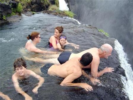 لم اصدق مار أته عيناي من صور لأناس يسبحون في منحدر مائي شديد الخطورة ، حتى شاهدت الفيلم الوثائقي عن هذه البركة التي توجد في قارة أفريقيا تحديدا في شلالات فيكتوريا ، يمكن لأي شخص يرغب في السباحة في هذه البركة الواقعة في حافة الشلال من دون أن تجرفه تيارات الشلال القوية والسقوط مع مجرى المياه المتدفقة عن علو يقارب 128متراً ، ولهذا تسمى البركة بمسبح الشيطان ، تجلت عظمة الخالق وقدرته عز من قائل « قل سيروا في الأرض فانظروا كيف بدأ الخلق ثم الله ينشئ النشأة الآخرة إن الله على كل شيء قدير .