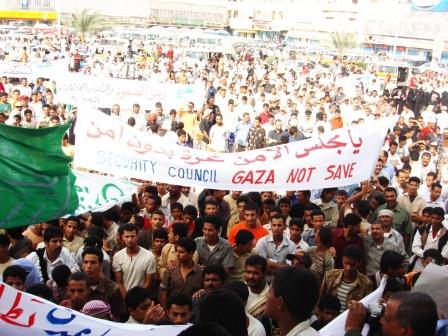 وعبر الطلاب الذين خرجوا في مسيرة تضامنية بمدينة ذمار عن استعدادهم لتقديم الدعم والمساندة لأبناء الشعب الفلسطيني الصامد في قطاع غزه وبما يمكنهم من الصمود في وجه آلة الحرب الهمجية الصهيونية التي ترتكب أبشع المجازر في حق الشعب الفلسطيني .وطالبوا في بيان لهم بضرورة التدخل الفوري والسريع من قبل الدول العربية والأمم المتحدة لوقف هذا العدوان السافر والوحشي وفك الحصار وإيصال كافة المساعدات إلى قطاع غزه .. ودعا الطلاب كافة الأنظمة العربية التي تربطها مع العدو الصهيوني علاقات إلى قطع هذه العلاقات وطرد سفراء هذا الكيان الغاصب المجرم من بلدانهم والاقتداء بفنزويلا.واستنكر البيان الصمت العربي والدولي تجاه هذا العدوان .. ودعوا إلى تقديم مجرمي الحرب الصهاينة إلى محمكة العدل الدولية جزاء ما يقترفونه من جرائم وحرب إبادة في حق الشعب الفلسطيني .وثمن البيان وقوف كافة الشرفاء في العالم مع الشعب الفلسطيني الصامد وقضيته العادلة ..معبرين في الوقت نفسه عن تضامنهم الكامل وتأييدهم لحق الشعب الفلسطيني في المقاومة حتى تحرير أرضه وإقامة دولته المستقلة على أرضه وعاصمتها القدس الشريف.وفي المسيرة دعا رئيس جامعة ذمار الدكتور أحمد محمد الحضراني في كلمته التي القاها إلى التضامن الكامل مع أبناء الشعب الفلسطيني في قطاع غزه ليتمكنوا من الصمود والتصدي لهذا العدوان البربري .. مشيداً بالصمود البطولي للمقاومة الفلسطينية في وجه حرب الإبادة والعدوان الوحشي الذي ينم عن حقد دفين تجاه الشعب الفلسطيني من قبل الصهاينة. وفي محافظة المحويت ادان أبناء المحافظة في المهرجان التضامني الذي اقيم في مديرية شبام كوكبان أمس العدوان الإسرائيلي الغاشم والجرائم البربرية البشعة و الإرهابية الجبانة التي تمارس ضد الأبرياء والعزل من أبناء الشعب الفلسطيني في قطاع غزة. وعبر ابناء محافظة المحويت خلال المهرجان الجماهيري التضامني الذي نظمته الاحزاب السياسية ومنظمات المجتمع المدني عن وقوفهم الكامل إلى جانب إخوانهم وأشقائهم من ابناء الشعب الفلسطيني في قطاع غزة الذين يعيشون تحت وابل النيران الإسرائيلية في ظل صمت عربي ودولي مخز.وطالبوا الحكام والدول العربية والمنظمات الدولية بسرعة التدخل لوقف المجازر الهمجية الخطيرة التي ذهب ضحيتها الآلآف من القتلى والجرحى اغلبهم من الأطفال والنساء والشيوخ الأبرياء في غزة .