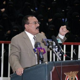 وقال:” أأكد أن هذه أصبحت خيارات وطنية لا تراجع عنها على الإطلاق ومهما كانت المنغصات وعلى المسؤولين في الحكومة أو في السلطة المحلية أن لا تضيق صدورهم من الرأي والرأي الآخر ، فكل القضايا تحل بالحوار في إطار السلطة المحلية أو السلطة المركزية او الأطر الحزبية ، فالحوار أفضل وسيلة لمعالجة أية اختلافات أو تباينات في الرؤى وتقريب وجهات النظر في كل ما من شأنه خدمة مسيرة التنمية والتحديث في الوطن” ، وتابع القول:” نحن ضد إراقة الدماء وإزهاق الأرواح ، ونحن مع التنمية والامن والامان والاستقرار والحوار البناء والجاد والهادف”. وأردف الأخ الرئيس:” لمحافظة اب البطلة ولأبنائها دور كبير وباع طويل في الثورة اليمنية المباركة (26سبتمبر و14 اكتوبر) حيث قدمت هذه المحافظة البطلة خيرة ابنائها دفاعا عن الثورة ومن اجل تثبيت دعائم الثورة والنظام الجمهوري وفي المقدمة الشهيد البطل علي عبد المغني ولا داعي أن أعدد الشهداء من هذه المحافظة فقائمتهم طويلة” .وتطرق فخامة الأخ الرئيس إلى جهود التنمية وخاصة في قطاعي الزراعة والكهرباء ، مبينا أن إنشاء السدود والحواجز والكرفانات المائية مناط بوزارة الزراعة وعلى السلطة المحلية ان تحدد المناطق ذات الاحتياج وتدرجها ضمن خطط التنمية مع مراعاة أن تستفيد من الاخطاء الماضية وعدم تكرار التجاوزات السابقة في منح تراخيص للحفارات لحفر آبار المياه بطريقة عشوائية الأمر الذي يتسبب في استنزاف مخزون الأحواض المائية لسقي محاصيل غير غذائية وفي مقدمتها شجرة القات على حساب المحاصيل الغذائية والأشجار المثمرة و البن .ووجه فخامة ألأخ الرئيس الوزارات المعنية بإيقاف الحفر العشوائي لآبار المياه وإيقاف عمل الحفارات الا في حالات الضرورة لمياه الشرب وليس لري القات.وأشار فخامة الأخ الرئيس إلى ما كانت تتمتع به محافظة إب قبل عشر إلى خمسة عشرة سنة من غنى في ينابيع وعيون المياه وبخاصة في منطقة وادي السحول التي كانت تلبي احتياجات العديد من المناطق في المحافظة بل والمناطق المجاورة في محافظة تعز ، وقال:” الآن بدأت آبار المياه في العديد من مناطق اب تنضب ما يجعل هذه المحافظة التي كانت غنية بالمياه سابقا بحاجة ماسة في غضون السنوات القليلة القادمة إلى مشاريع تحلية لمياه البحر مثلها مثل محافظة تعز التي ستلبى احتياجات سكانها عن طريق تنفيذ محطة تحلية لمياه البحر في المخا”.