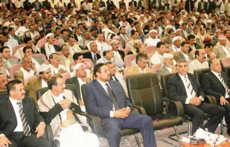 وكان محافظ محافظة ذمار يحيى علي العمري قد القى كلمة ترحيبية عبر في مستهلها عن ترحيبه بحضور نائب رئيس مجلس الوزراء للشئون الداخلية وضيوف المحافظة من الوزراء والمسئولين وأعضاء مجلسي النواب والشورى الذين شاركوا قيادة محافظة ذمار هذه الاحتفالية بمناسبة يوم الديمقراطية، والتي جاءت تحت شعار» وفاء للوطن وللقائد المشير علي عبد الله صالح رئيس الجمهورية»، وتزامنا مع قرب احتفالات شعبنا بالعيد الوطني التاسع عشر للجمهورية اليمنية «22 مايو».وقال العمري:» إن هذا المهرجان يأتي ابتهاجا بعظمة هذه المناسبة وتعبيرا عما تشكله من دلالات ومعان عظيمة شهدت اليمن معها نقلة نوعية أسهمت في تمتين دعائم التنمية والممارسة الديمقراطية التي تجسدت بالانتخابات الرئاسية والنيابية والمحلية، وترسخت بوصولها إلى مستوى انتخابات المحافظين.وأكد أن هذا اليوم يمثل فخر واعتزاز لكل أبناء اليمن من خلال ما تحقق للوطن في ظل قيادة فخامة الأخ الرئيس علي عبد الله صالح رئيس الجمهورية من مكاسب عظيمة.واستعرض محافظ ذمار ما ستشهده المحافظة خلال الاحتفالات بالعيد الوطني التاسع عشر للجمهورية اليمنية «22مايو» من افتتاح ووضع حجر الأساس للمشاريع التنموية والخدمية في مختلف مديريات المحافظة والتي تبلغ 280 مشروعا في مختلف المجالات بتكلفة إجمالية تبلغ 11 مليار و308 ملايين و355 ألف ريال، منها 133 مشروع افتتاح بكلفة 4 مليارات و140 مليون و329 ألف ريال، و147 مشروع تدشين ووضع حجر الأساس بتكلفة 7 مليارات و168 مليون و26 ألف ريال .ولفت إلى ما تحقق للمحافظة خلال السنوات الماضية من عمر الوحدة من مشاريع تنموية وخدمية بلغت 1847 مشروعا بتكلفة تجاوزت 95 مليار و268 مليون ريال.وبين أن إجمالي الموازنة الاستثمارية للمحافظة من المشاريع المركزية والمحلية لهذا العام 2009م بلغت أكثر من 13 مليار ريال و481 مليون و820 ألف ريال، من خلال اعتماد 606 مشاريع لهذا العام تنفذ في المحافظة منها 179 مشروعا مركزيا و427 مشروعا محليا.وتطرق المحافظ العمري إلى التضحيات الكبيرة التي قدمها أبناء ذمار في مختلف مراحل النضال الوطني والدفاع عن الثورة والجمهورية والوحدة والإسهام في مسيرة البناء والتنمية، مؤكدا وقوف أبناء المحافظة مساندين لمسيرة القيادة السياسية مباركين دعوة فخامة الأخ رئيس الجمهورية إلى الاصطفاف الوطني في وجه دعاة التشرذم الذين انكشفت نواياهم السيئة بإطلاق صيحات الفتنة وشعارات الفرقة رغبة في إعادة عجلة التاريخ إلى الوراء.والقيت كلمات عن الأحزاب والتنظيمات السياسية من قبل عضو مجلس الشورى حسن عبد الرزاق وأحزاب التحالف الوطني من قبل الدكتورة بلقيس الحضراني وعن منظمات المجتمع المدني من قبل حسين أحمد الصوفي أكدت في مجملها أن الوحدة خط أحمر ولا يجب تجاوزه مهما كانت الخلافات والتباينات والآراء، وشددت على أن يقف الجميع صفا واحدا في وجه أعداء الوحدة ودعاة التشرذم والتشطير، ودعت الكلمات إلى تنفيذ دعوة فخامة الأخ رئيس الجمهورية لكل الأحزاب والتنظيمات السياسية إلى الحوار المفتوح والجاد بهدف الخروج برؤية وطنية موحدة تحت مظلة الوحدة والشرعية الدستورية والديمقراطية.كما القيت كلمات عن علماء محافظة ذمار ألقاها مفتي المحافظة القاضي محمد العزي الأكوع، وعن أبناء الشهداء ومناضلي الثورة والوحدة ألقاها وكيل المحافظة المساعد الدكتور عبدالله علي الميسري، وعن قطاع المرأة بالمحافظة القتها مدير عام تنمية المرأة إيمان يحيى النشيري، أكدت في مجملها على الرفض التام والقاطع لكل التحركات الطائفية والمناطقية والتشطيرية التي يسعى إليها البعض ممن تضررت مصالحهم الشخصية بقيام الجمهورية اليمنية.واوضحت الكلمات أن أبناء اليمن من رجال ونساء وشيوخ سيقفون صفا واحدا في وجه المتربصين بالمشروع الوحدوي، وسيكونون مدافعين بقوة عن الوحدة الوطنية التي تعد أغلى المكاسب والمنجزات في العصر اليمني الحديث.