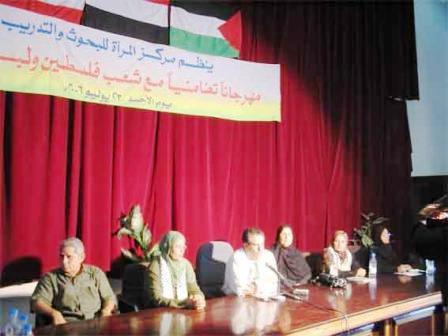 عدن / وداد شيبلي ت / علي الدربعقد أمس في قاعة المؤتمرات في عدن مهرجان تضامني مع شعبي فلسطين ولبنان نظمه مركز المرأة للبحوث والتدريب بالتنسيق مع اتحاد ونساء اليمن واللجنة الوطنية للمرأة والمنظمات النسائية في المحافظة . وفي المهرجان الذي حضره عدد من من الشخصيات الأكاديمية والسياسية والثقافية ألقى الأخ / أحمد الضلاعي الوكيل المساعد في محافظة عدن كلمة أشاد فيها بصمود الشعب العربي في فلسطين ولبنان.[c1]* التفاصيل صفحة متابعات اخبارية تحت عنوان :" في المهرجان التضامني مع الشعبين الفلسطيني واللبناني " [/c]
