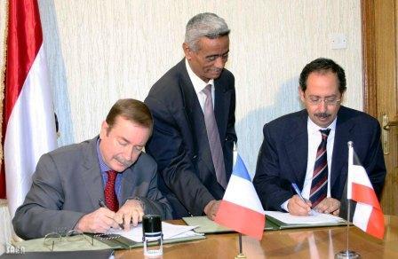 حضر توقيع الاتفاقية وكيل وزارة التخطيط والتعاون الدولي لقطاع التعاون الدولي المهندس هشام شرف عبدالله ورئيس وحدة تنسيق المساعدات الخارجية بالوزارة نبيل علي شيبان ومدير عام التعاون الدولي مع آسيا واستراليا عمر عبد العزيز .من جهة أخري وقع اليوم بوزارة التخطيط والتعاون الدولي على الاتفاقية الخاصة بتمديد فترة تنفيذ مشروع تنمية الثروة الحيوانية بمحافظة تعز بين اليمن وفرنسا .وتقضي الاتفاقية التى وقعها نائب رئيس الوزراء للشئون الاقتصادية وزير التخطيط والتعاون الدولي عبد الكريم إسماعيل الأرحبي والمدير الإقليمي للوكالة الفرنسية للتنمية بصنعاء كريستيان فلامون تقديم الوكالة الفرنسية مليونين و400 الف دولار لاستكمال تنفيذ مشروع تنمية الثروة الحيوانية بتعز حتى نهاية 2010م .واعتبر نائب رئيس الوزراء للشئون الاقتصادية ان توقيع الاتفاقية يندرج في اطار التعاون المتنامي بين اليمن وفرنسا.. مؤكدا تقدير الحكومة اليمنية لحرص الحكومة الفرنسية في دعم وتعزيز مقدرات التنمية في اليمن