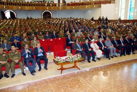 فيما استعرض مدير كلية القيادة والأركان العميد الركن عمر سالم بارشيد ، تقريراً عن نجاح الدورة الثانية عشرة قيادة وأركان المشتركة ، مبينا أنها بدأت في 27 اكتوبر 2007م، بمشاركة 120 دارسا من الضباط منهم 109 يمنيين و11 ضابطا من سوريا ، فلسطين، الأردن ، موريتانيا ، السودان ، وعمان ، مشيرا إلى أن المستوى العام للدورة جيد جدا وأن ثلاثة ضباط حصلوا على معدل ممتاز و88 على معدل جيد جدا و29 على معدل جيد جميعهم تلقوا مختلف المعارف من قبل 55 ضابطا مدرسا وستة ضباط من مصر والعراق .وبيّن مدير كلية القيادة والأركان أن عدد بحوث الماجستير بلغ 120 بحثا بينما بلغت عدد الأوراق البحثية 120 ورقة بحث منها تلخيص كتب مختلفة وثمانية بحوث جماعية فيما بلغت نسبة التنفيذ من الخطة التعليمية المعتمدة 1ر98 بالمئة .وأكدت كلمة الخريجين التي ألقاها العميد الركن ناصر عبدالله بارويس أن الخريجين تزودوا بمختلف المعارف والعلوم التكتيكية والتعبوية والاستراتيجية في مختلف المجالات السياسية والاقتصادية والعسكرية والأمنية والاجتماعية والثقافية والادارية وكذلك ادارة الأزمات والتفاوض ، مشيرا الى أن الخريجين أمضوا عاما دراسيا أكاديميا كاملا اشتمل على مقررات ومراجع ومناهج أعدت على أعلى المستويات وبخبرات أكاديمية رفيعة بالإضافة إلى العديد من الانشطة والفعاليات العلمية المكملة للمناهج المقررة والزيارات الميدانية الداخلية والخارجية واختتمته بتنفيذ المباراة الاستراتيجية السياسية والعسكرية ، مؤكدا ان الخريجين أصبحوا على مستوى رفيع من العلم والمعرفة التي ستمكنهم من اداء مهامهم المختلفة في المجالين العسكري والمدني على أكمل وجه .وجدد العميد بارويس العهد باسم الخريجين للقيادة السياسية بان يكونوا عند مستوى المسؤوليات الجسام الملقاة على عاتقهم محافظين على الوطن اليمني وثورته ووحدته المباركة وانجازاتها متصدين لكل من يحاول العبث بأمن الوطن واستقراره .إلى ذلك عبرت كلمة الدارسين العرب التي القاها العقيد الصادق خالد البشير من جمهورية السودان عن الشكر للقيادة السياسية في اليمن وجميع زملاء الدورة والقائمين عليها لما أولوه من رعاية واهتمام للملتحقين في الدورة ورعاية وحرص كبير على الخروج بأكبر حصيلة علمية ومعرفية في مجال العمل العسكري.وأشاد بما وصلت إليه القوات المسلحة اليمنية من تطور وتنظيم وما يتمتع به رجالها من معنويات عالية ، وقال:« إن هذا الصرح العلمي الكبير الذي ارتوينا من ينابيع علومه الفياضة مدة 16 شهرا أشعل فينا مدرسوه وإدارتهم الحماس وروح المثابرة وأحاطونا برعايتهم الكريمة وزودونا بكم من المعلومات والمراجع نادرا ما توفره اي أكاديمية وأن البينة التحتية الشامخة لهذا الصرح تؤكد الاهتمام الذي تولونه للعلم والتعلم».